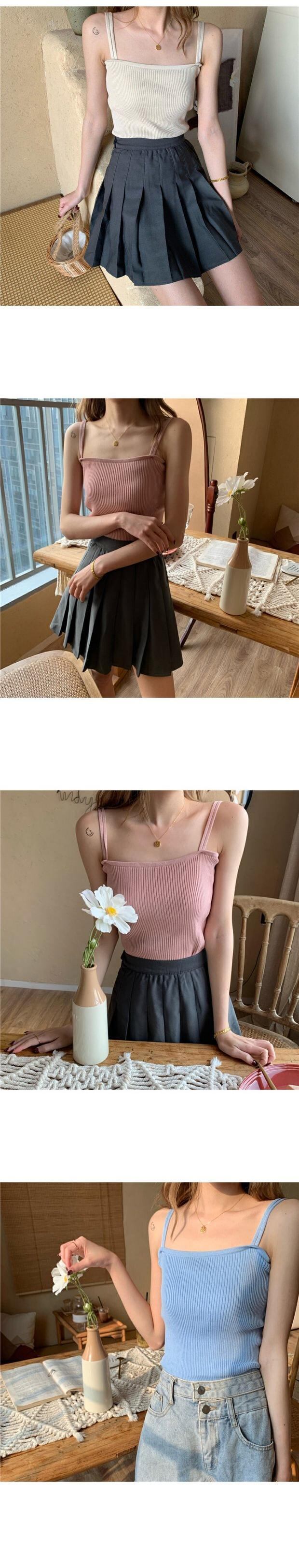 ニットサマースリムショートシャツ レッドソリッド カラートップス 夏物 ソリッドカラー スクウェア セブンプリンセス1897627195