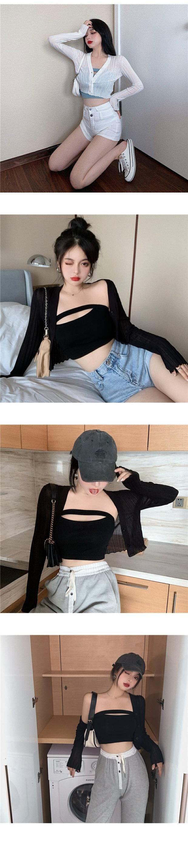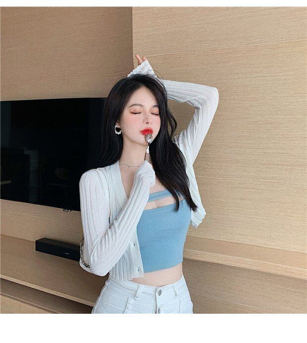 色:白いカーディガン,ブラックカーディガン,黒いチューブトップ,青いチューブトップ
