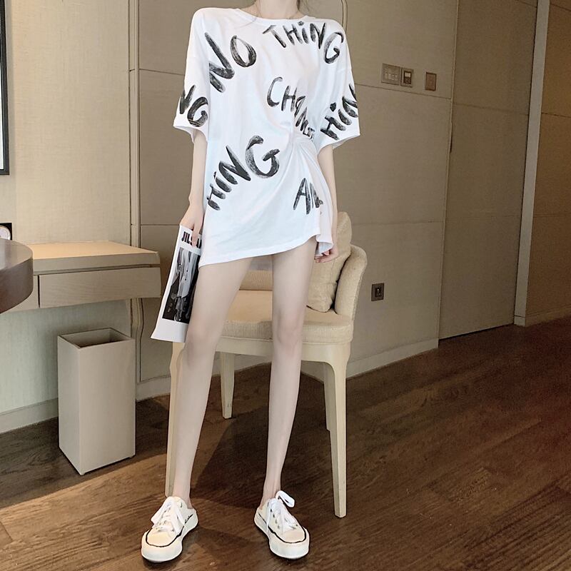 Tシャツ シャツ レディースルーズサマーラウンドネックプリント 夏物 Oネック セブンプリンセス75646746725