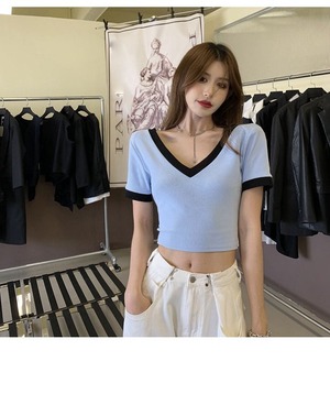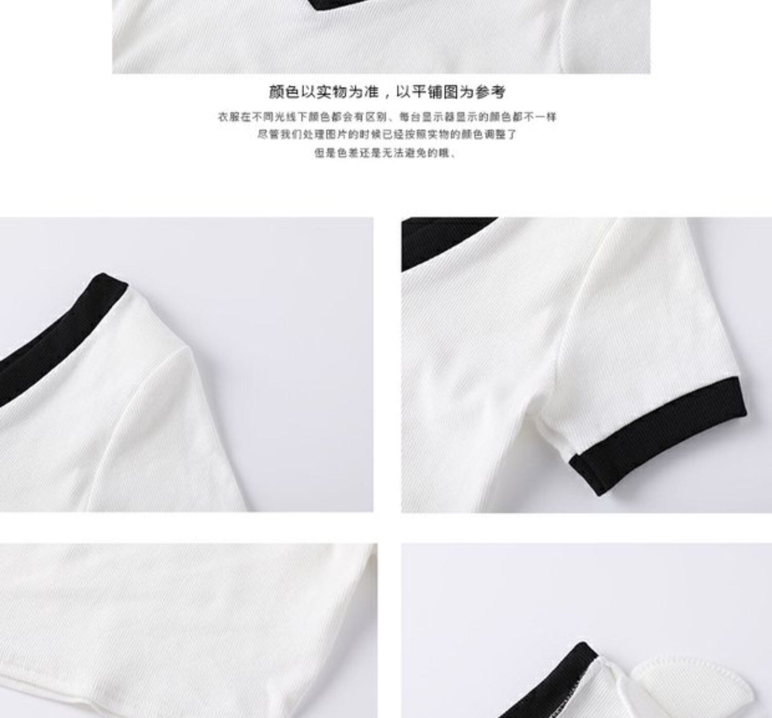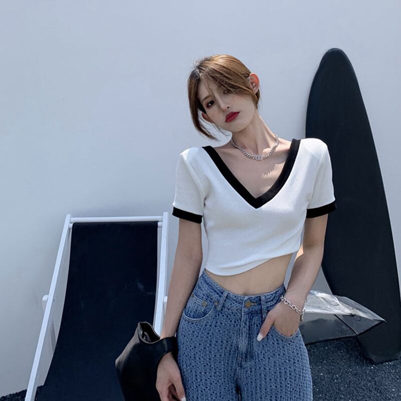Tシャツ Vネックサマースタイルホワイトクロップドトップス レディース 夏物 ヨーロピアン セブンプリンセス29452491821