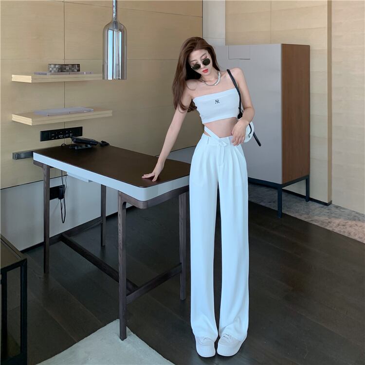 ホワイトパンツ サマーハイウェストウェストスリムカジュアル薄手ルーズ 夏物 セブンプリンセス206212066