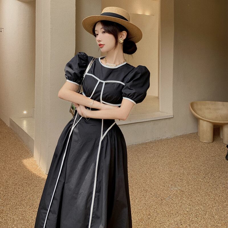 ホワイトドレス スリーブロングスカート サマースタイルウェストスタンダードAライン レトロ 夏物 セブンプリンセス62492418791