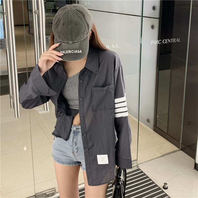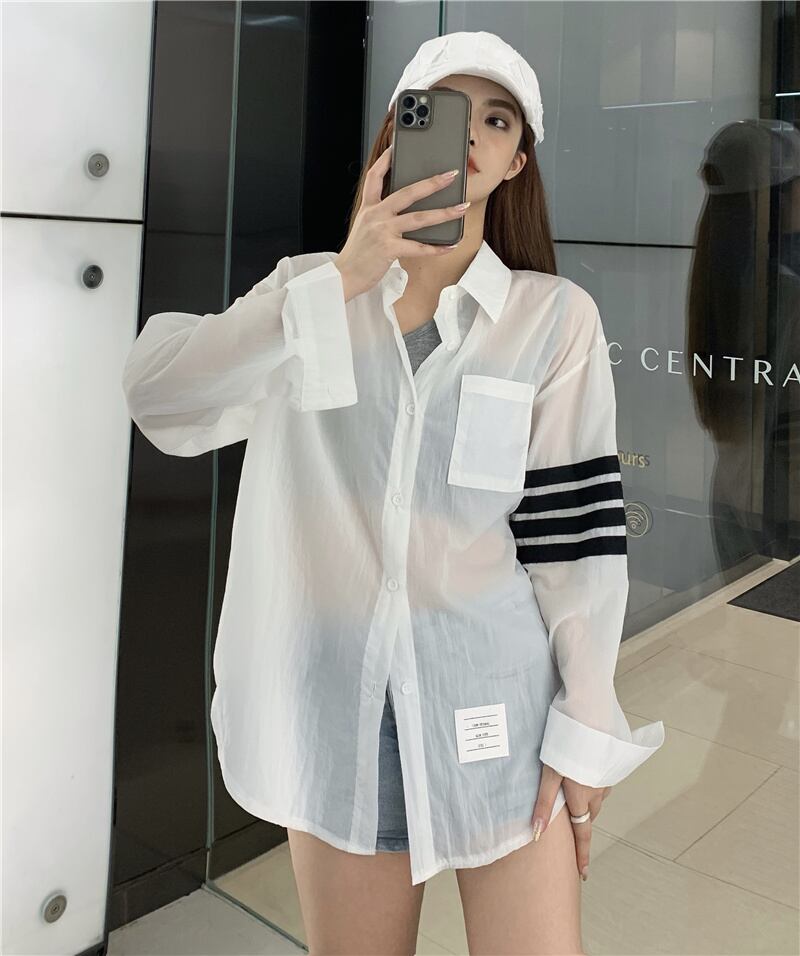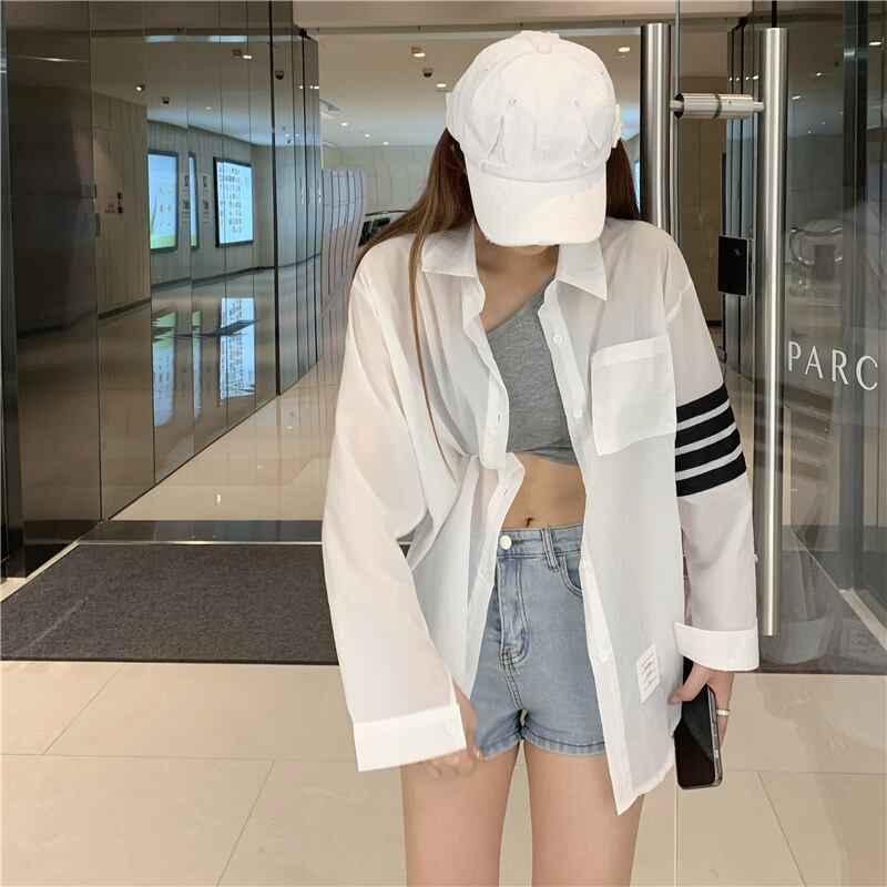 シフォンシャツ サマーストライプブラウス カーディガントップス ロング 夏物 セブンプリンセス29391217502