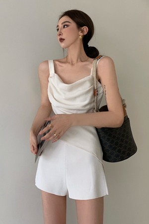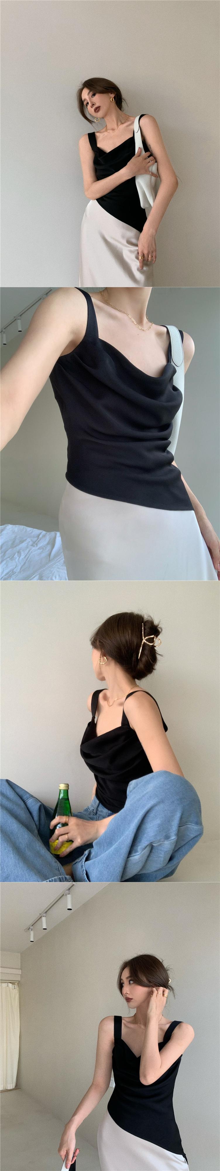 ホワイトサマーサテンスリムノースリーブブラウス 夏物 セブンプリンセス22205476956