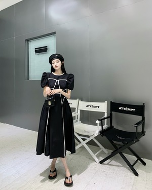 スタイルドレス サマーブラックスカート ウェストAライン 夏物 セブンプリンセス19534250451