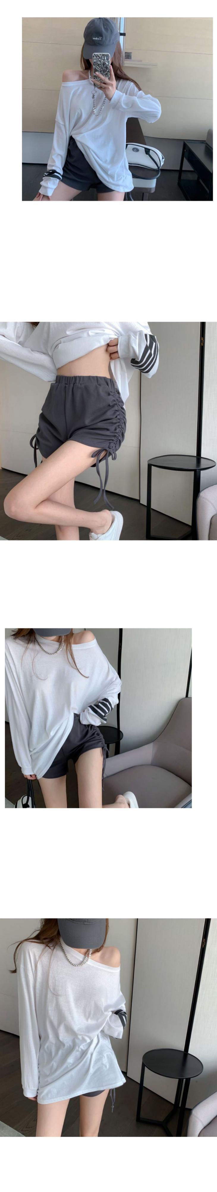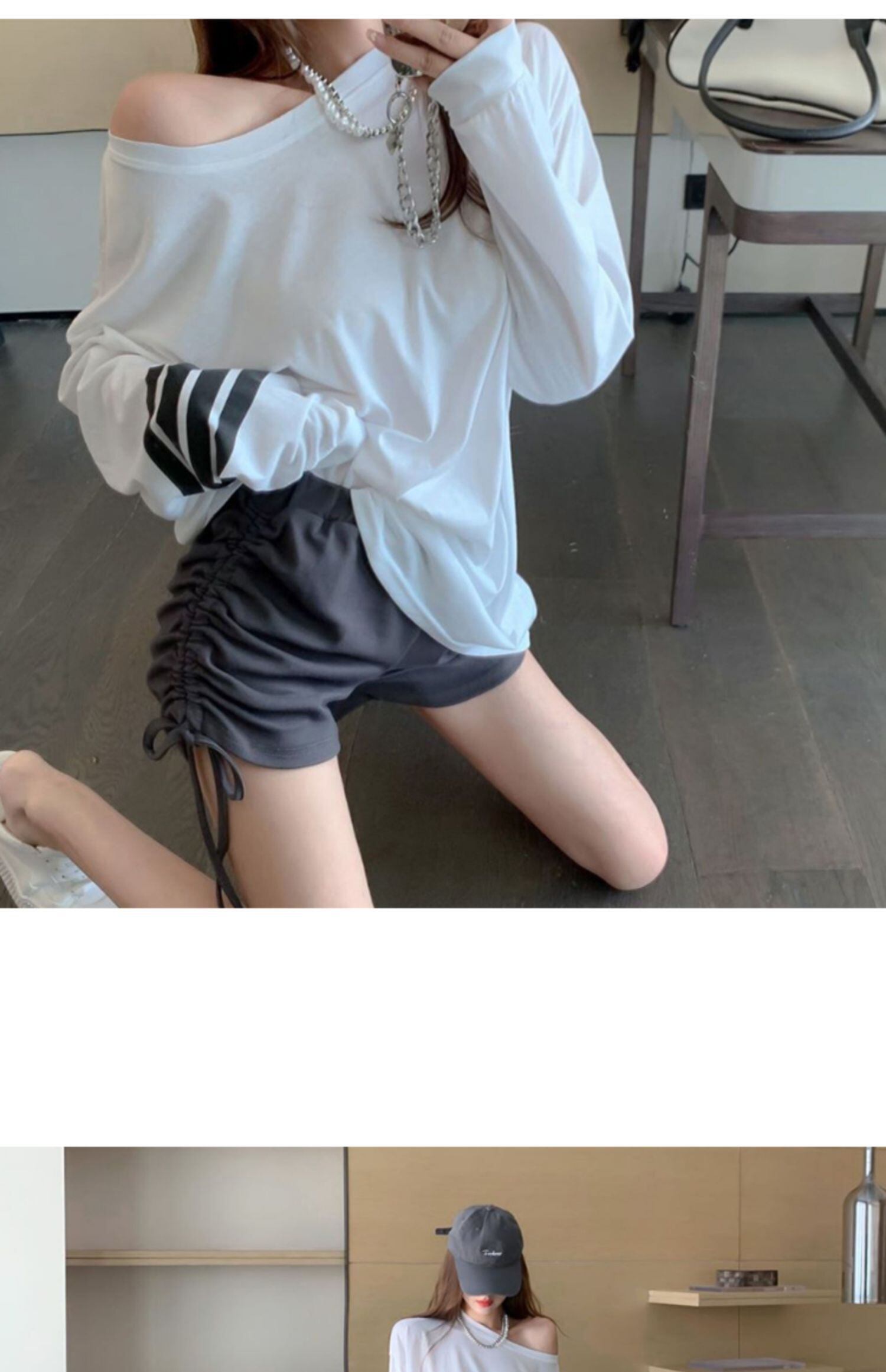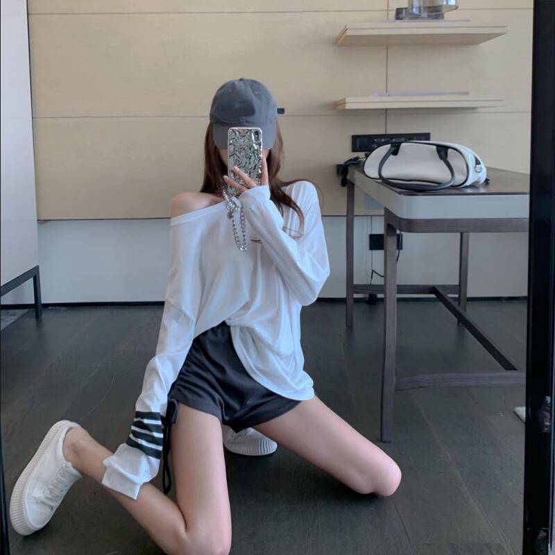 Tシャツ シャツ サマー薄手ルーズカジュアルレッドストライプトップス ロング 夏物 オフショルダー セブンプリンセス74465624050