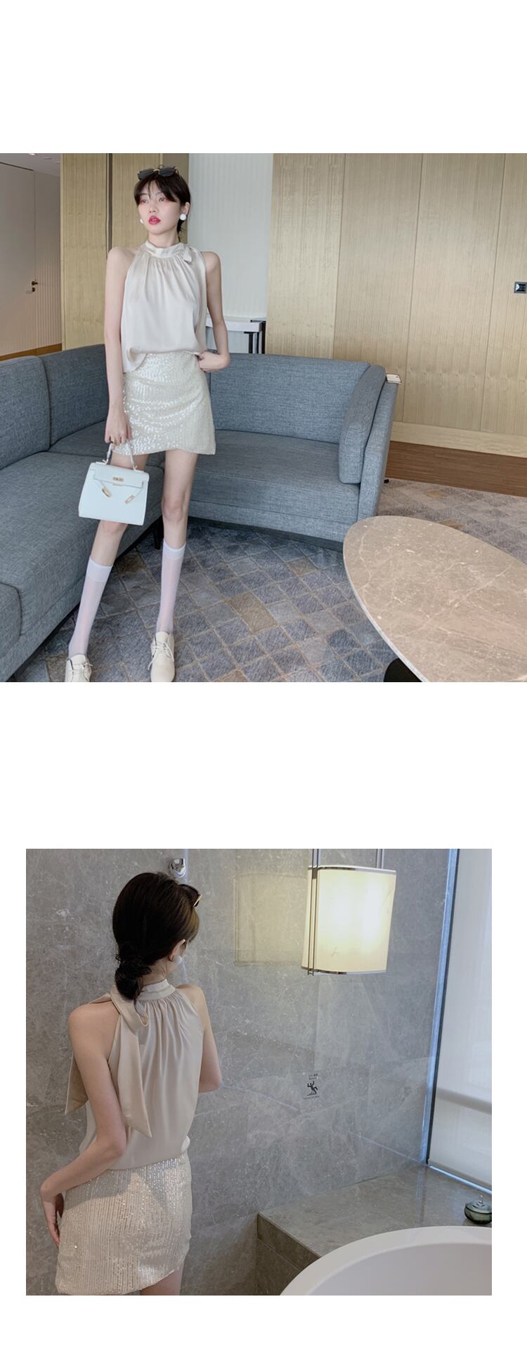 色:スパンコールスカート,シャンパントップ