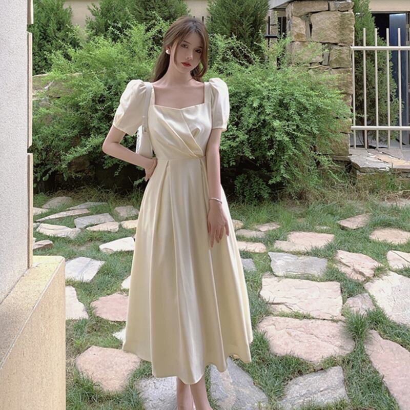 スリーブドレス スタンダードカラースカート サマースタイルウェスト薄手ロング レトロ 夏物 スクウェア セブンプリンセス1197242293