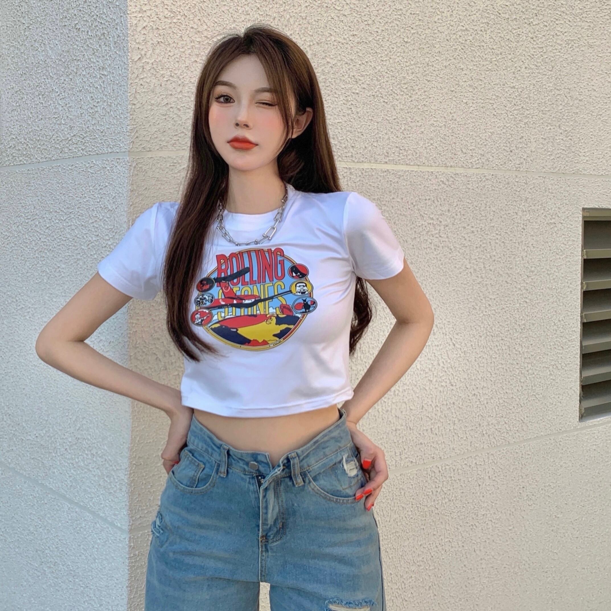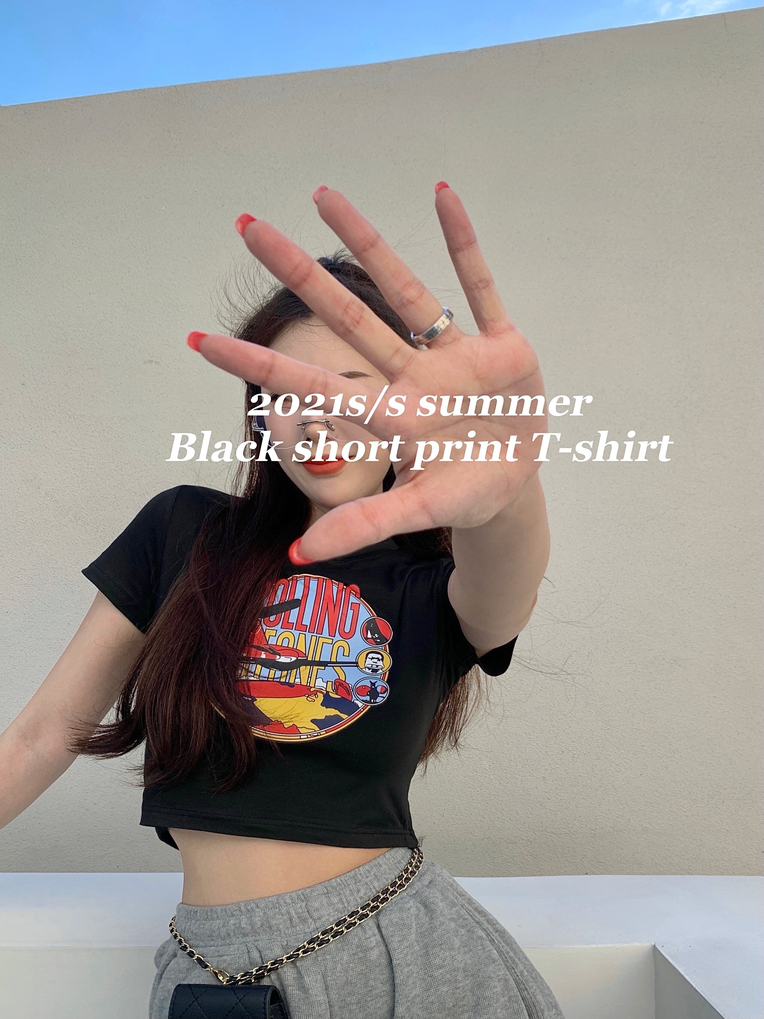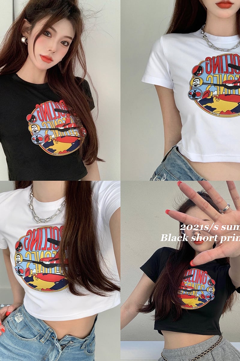 ショートTシャツ シャツ サマースリムプリント柄クロップドハイウェストウェスト 夏物 セブンプリンセス8362961856