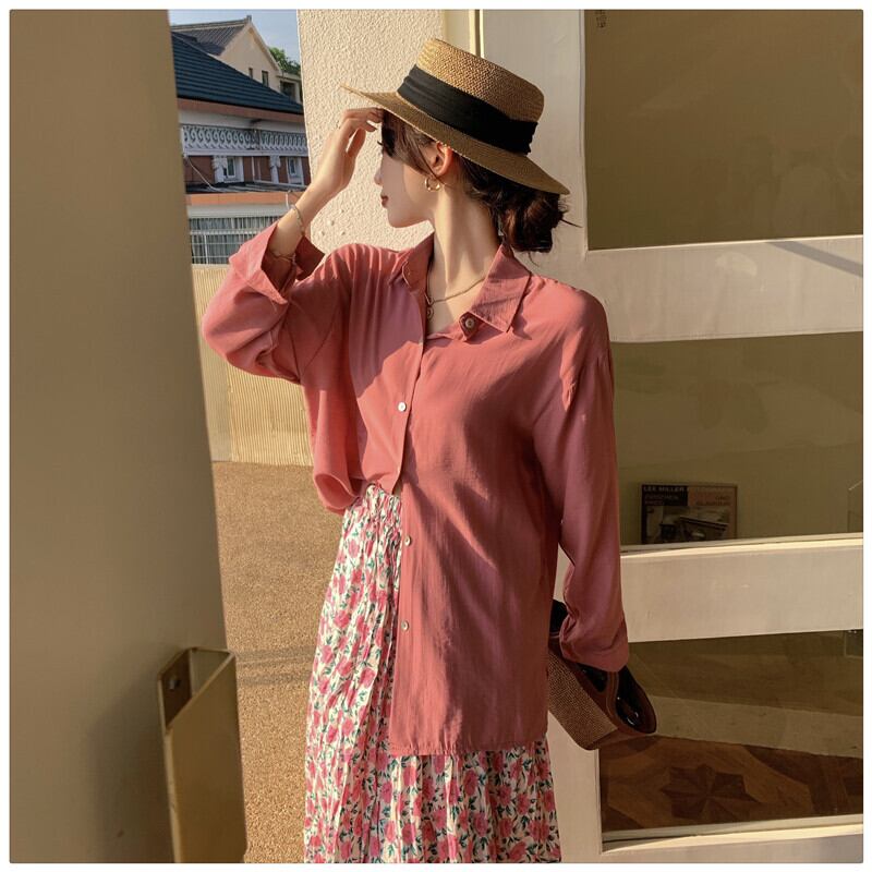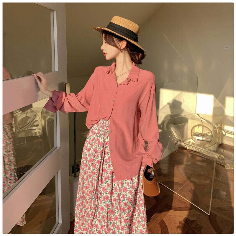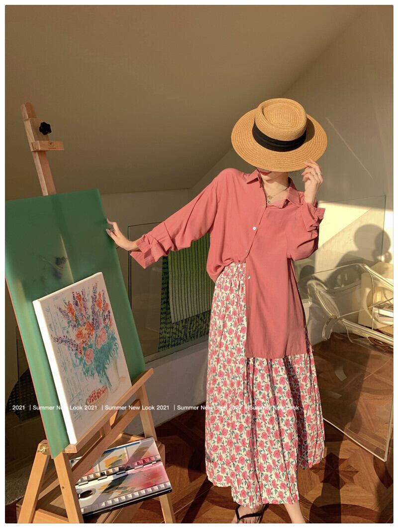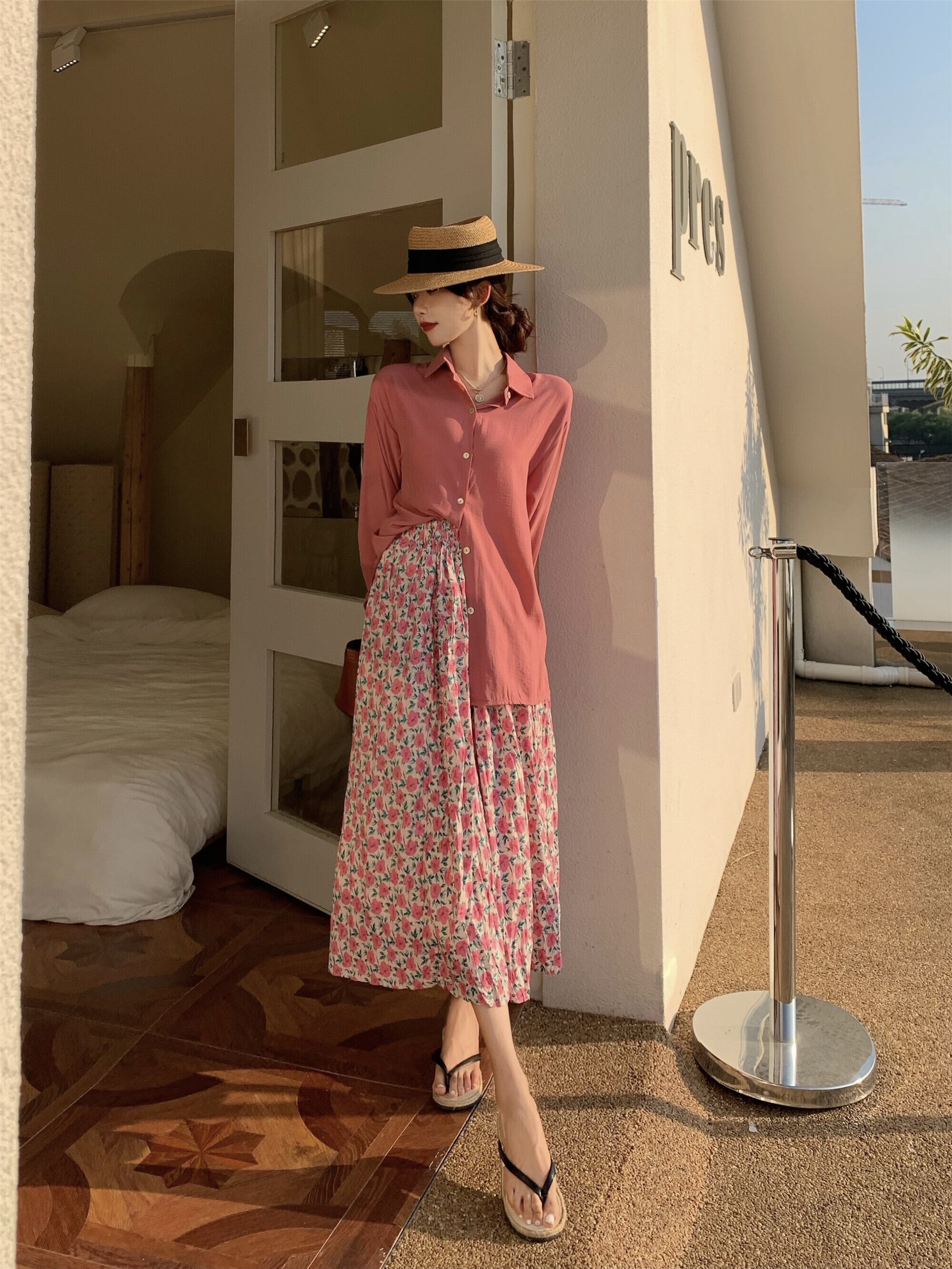 薄手シャツ ハイウェストフローラルスカート ロング 花柄 セブンプリンセス76417696666