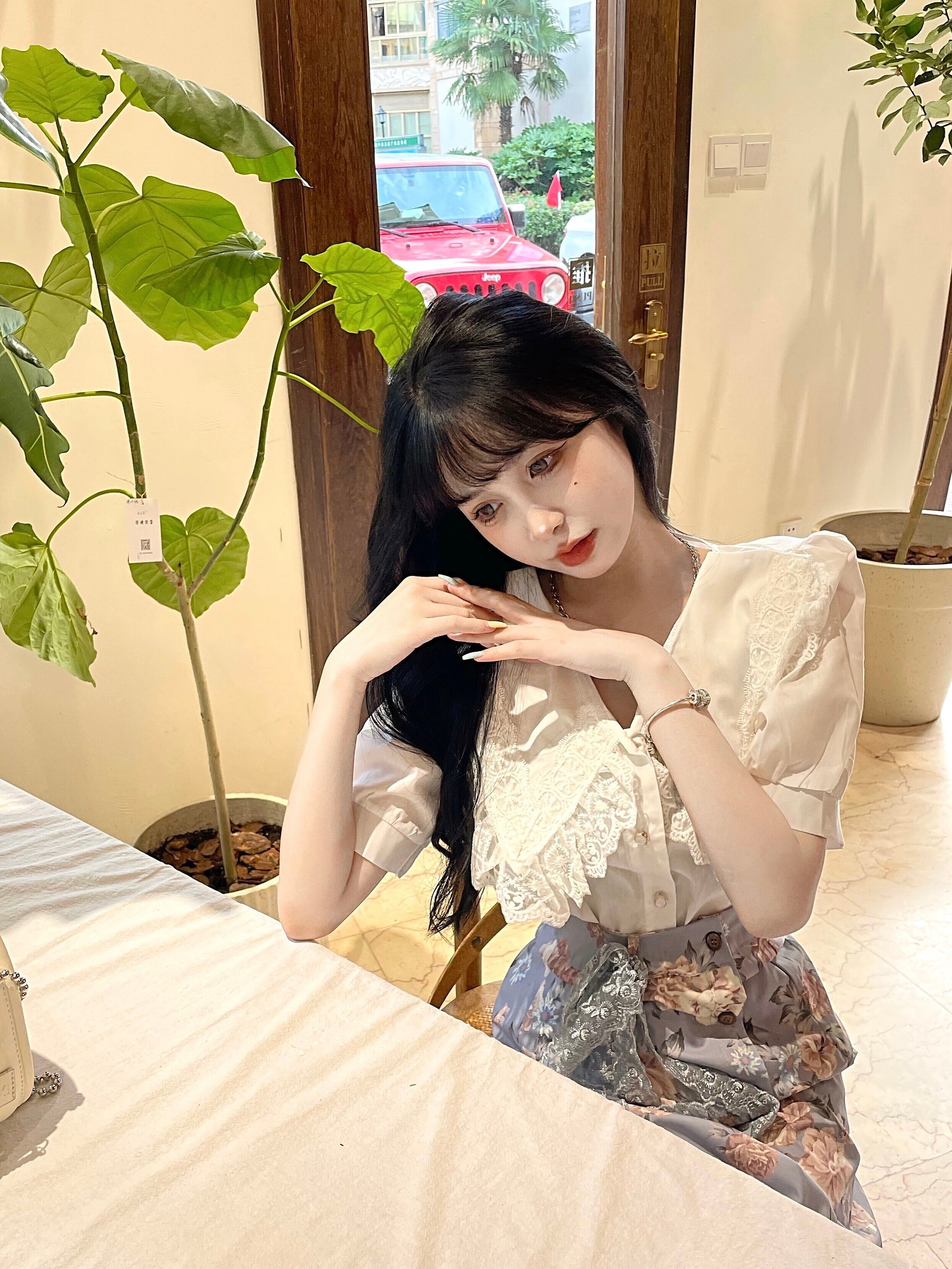色:レースシャツトップ,パターンスカート