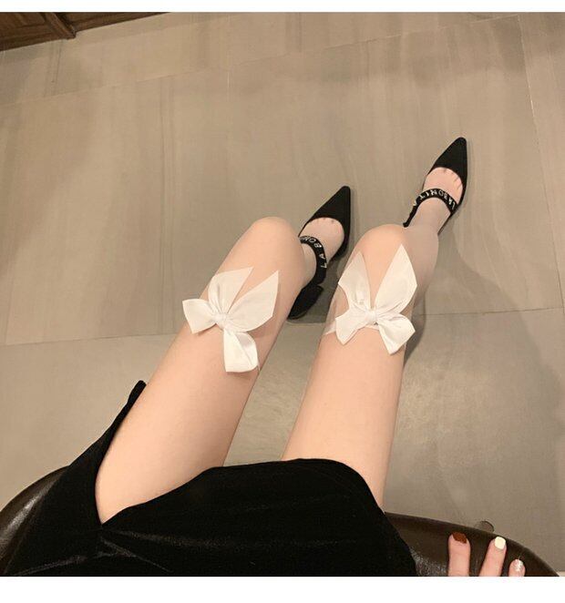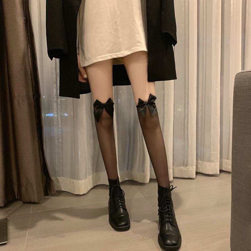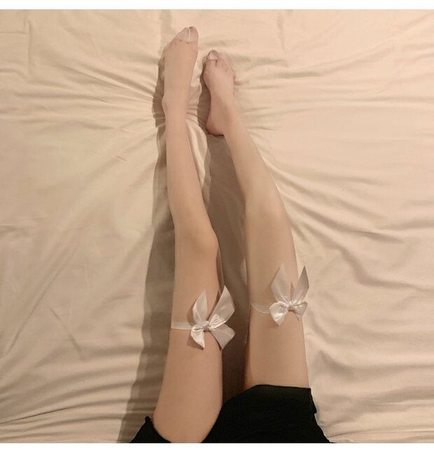 ホワイトストッキング 薄手レッドサマーロングソックス リボン 夏物 タイツ セブンプリンセス69546401484
