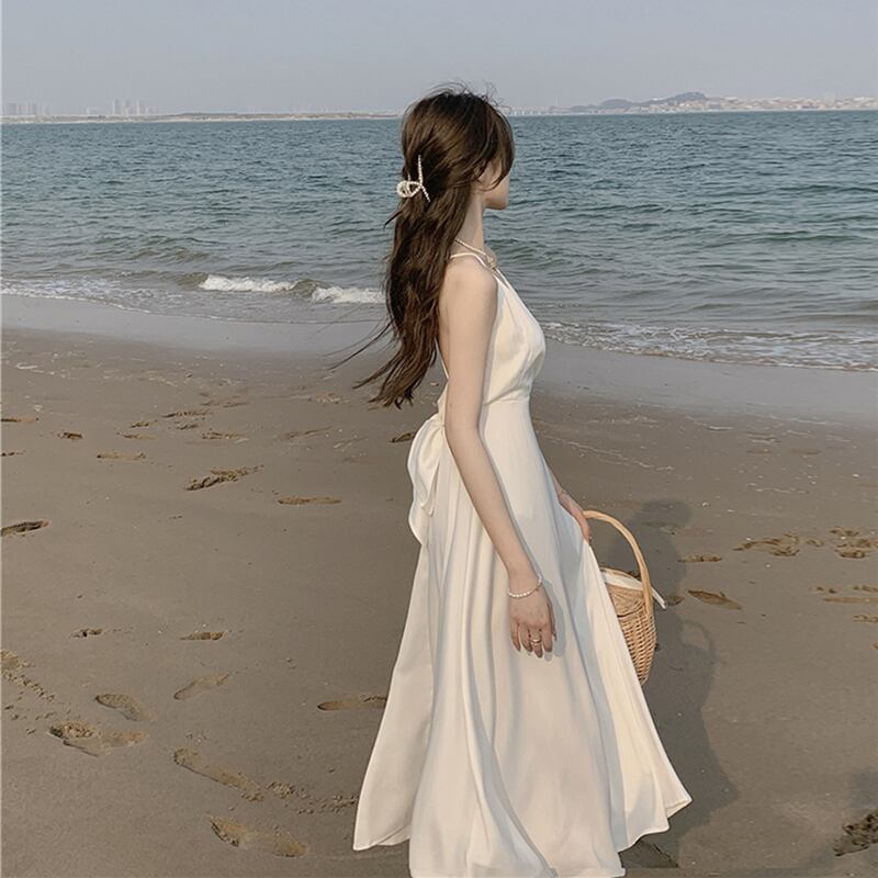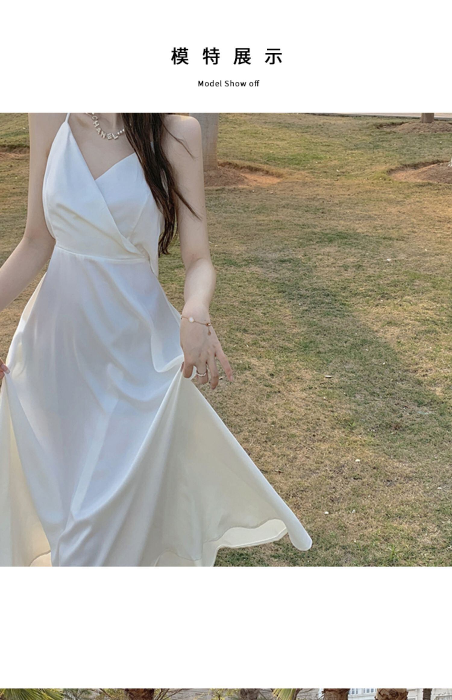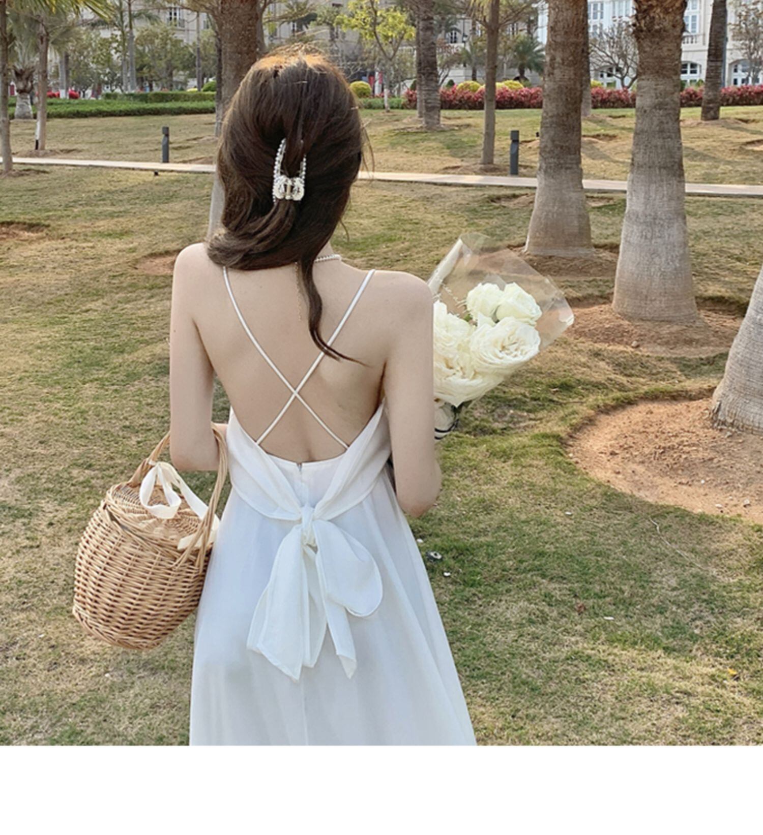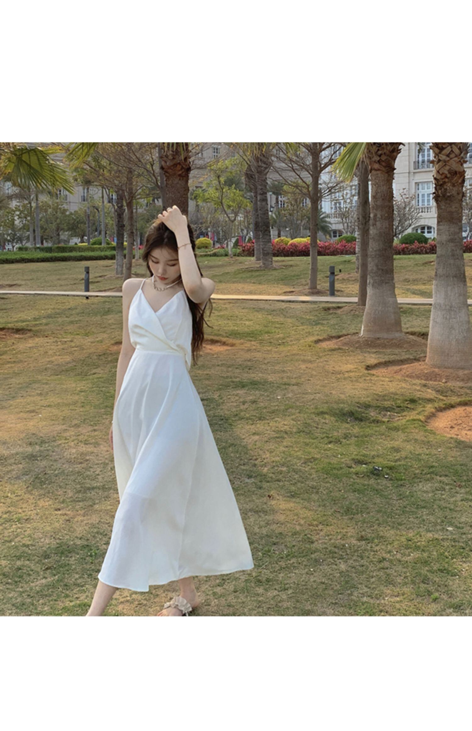 ドレス レディースホワイトバックレススカート サマーAラインロング 夏物 セブンプリンセス54208071