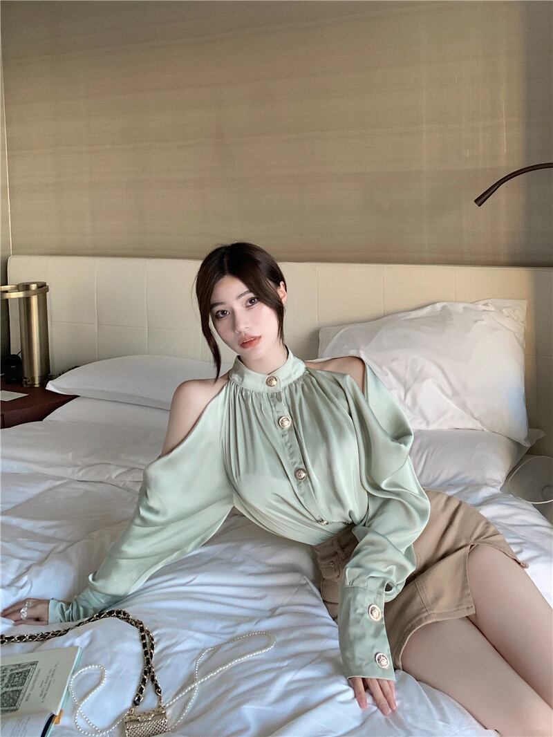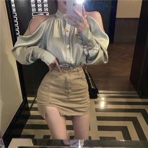 サテンシャツ スカート オフショルダー セブンプリンセス16832889209