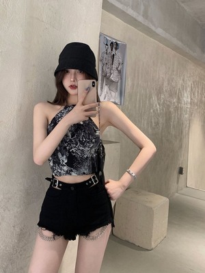スタンダードレッドレディースホルターショートノースリーブシャツ サマー レトロ 半袖 ハーフスリーブ 夏物 セブンプリンセス4493727420