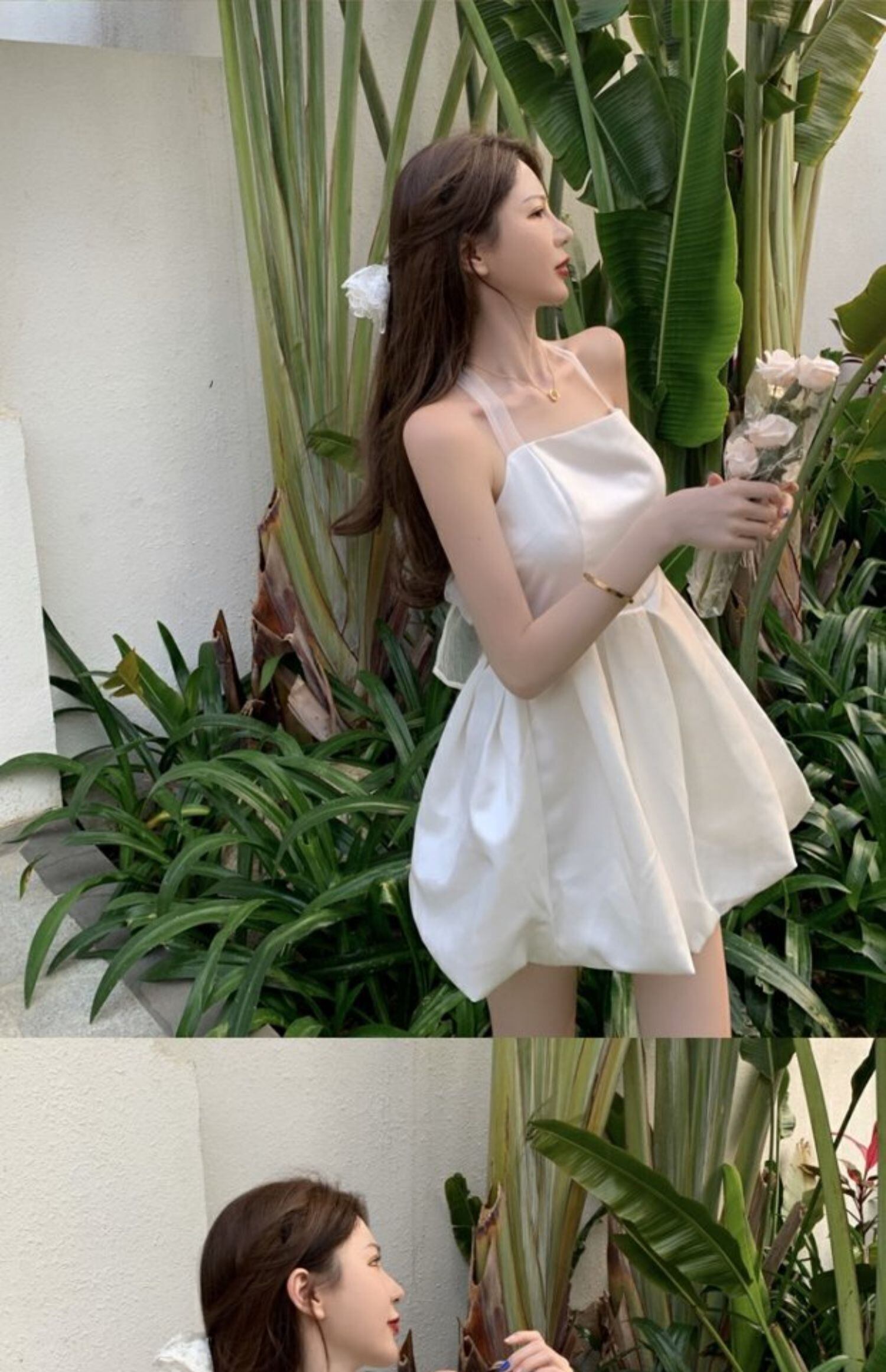 ドレス サマーバックレススリムスカート ホワイトウェストAライン 夏物 セブンプリンセス7502337426
