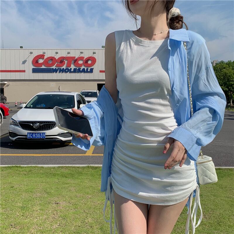 色:白のシャツ,白いスカート,グレースカート,青いシャツ