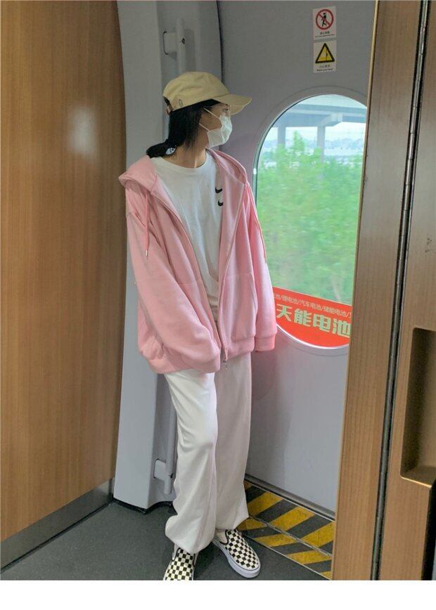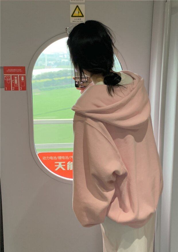ジャケット スプリングオータムフードセーター ジッパールーズ薄手トップス ロング ピンク 春物 秋物 セブンプリンセス31710316324