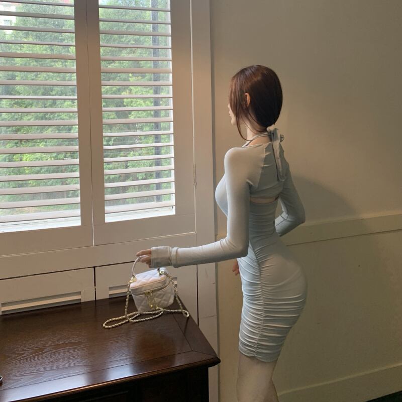 サマー薄手ウェストホルタードレス ショートブラウス ロング 夏物 セブンプリンセス951370966