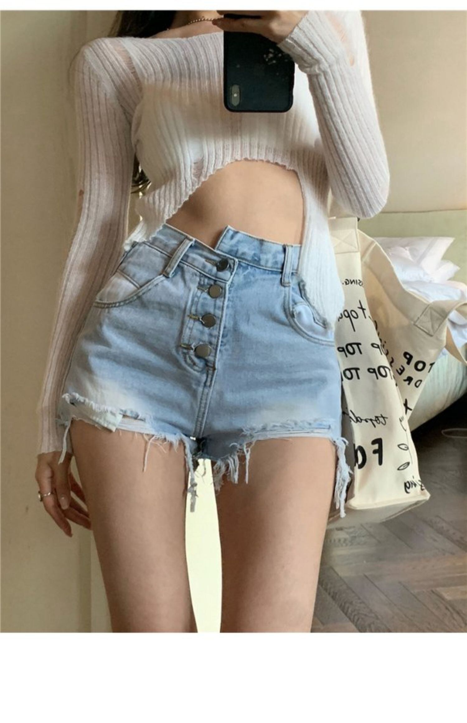 ジーンズ レディースサマー薄手ハイウェストウェストルーズワイドレッグショーツ パンツ 夏物 ブルマー ワイドパンツ セブンプリンセス90597143055