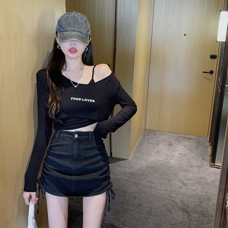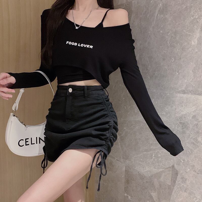 スカート サマー薄手ギャザーハイウェストウェストスリムブラックショート 夏物 セブンプリンセス26775593980