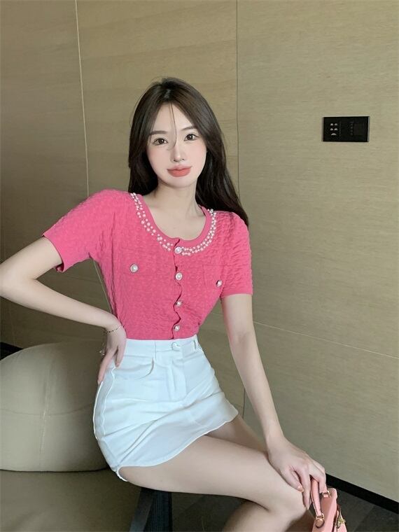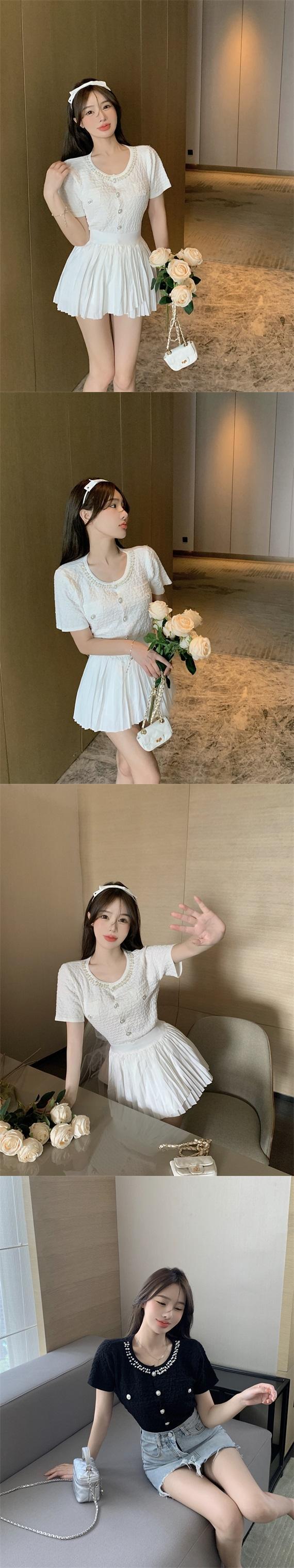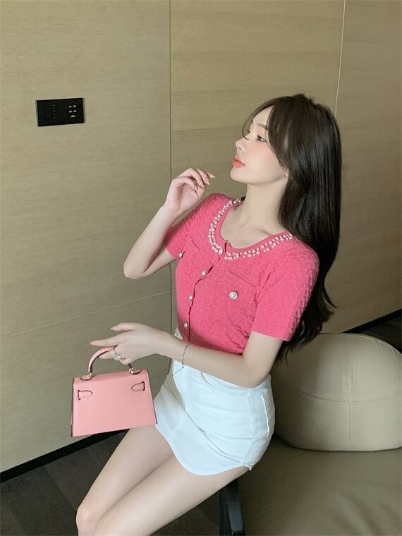 シングルパールバックルルーズラウンドネックセーター レディース Oネック 真珠 セブンプリンセス42735663281