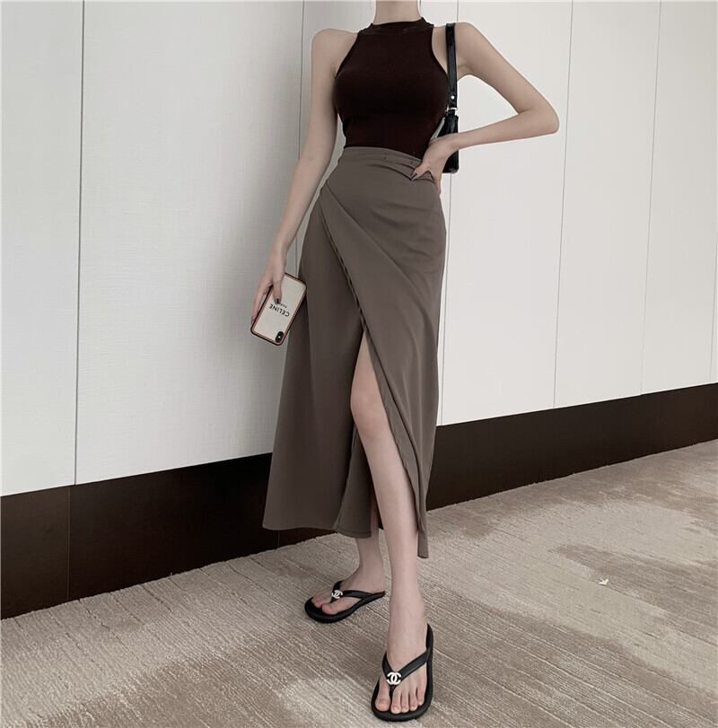 スリットスカート サマーハイウェストウェストスタンダードAラインロング レトロ 夏物 セブンプリンセス28274521932