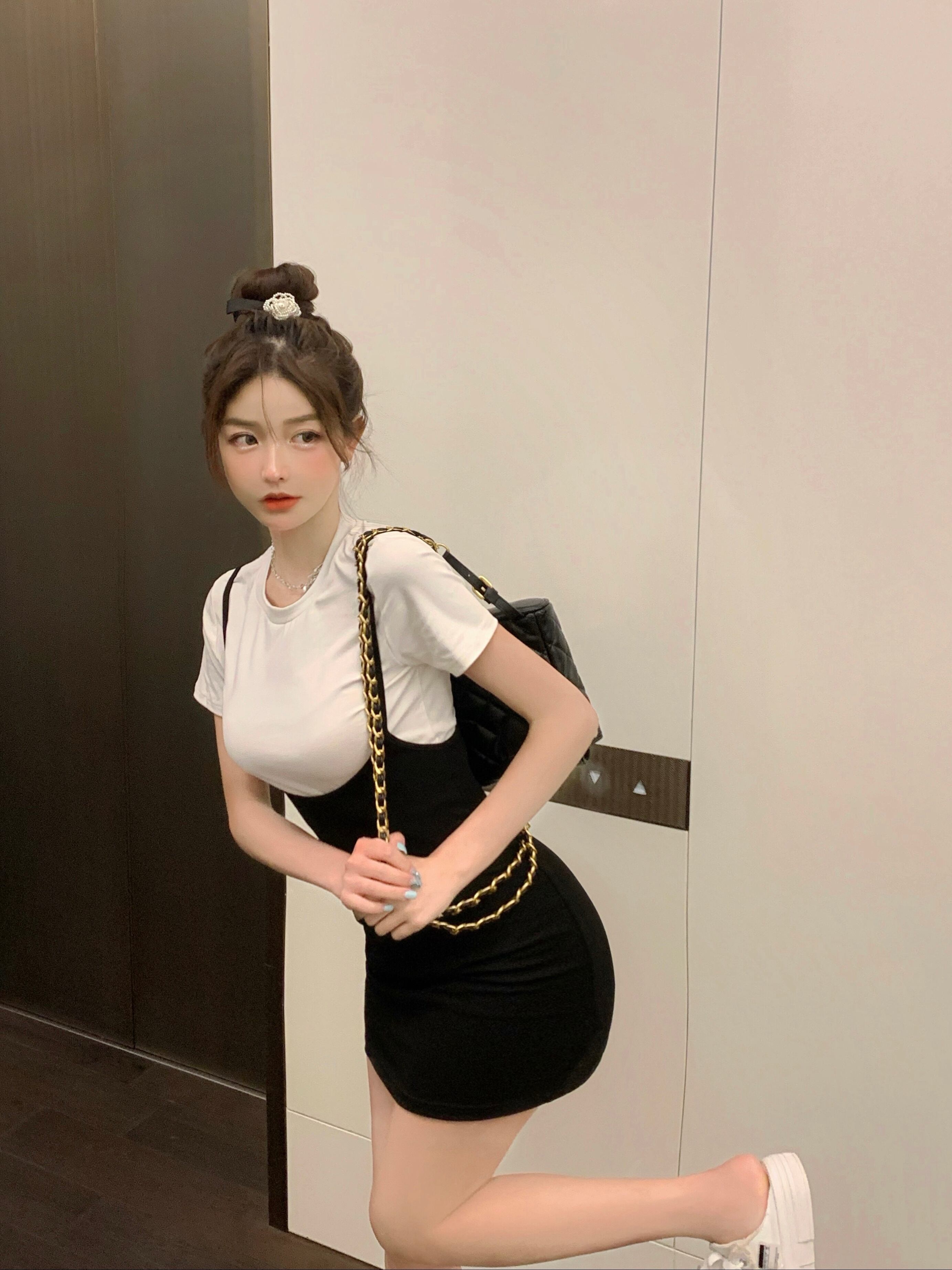 セット スリム半袖スリーブスカート ウェスト ショート ハーフスリーブ 大人ガーリー スウィート キュート カジュアル セブンプリンセス80305990556