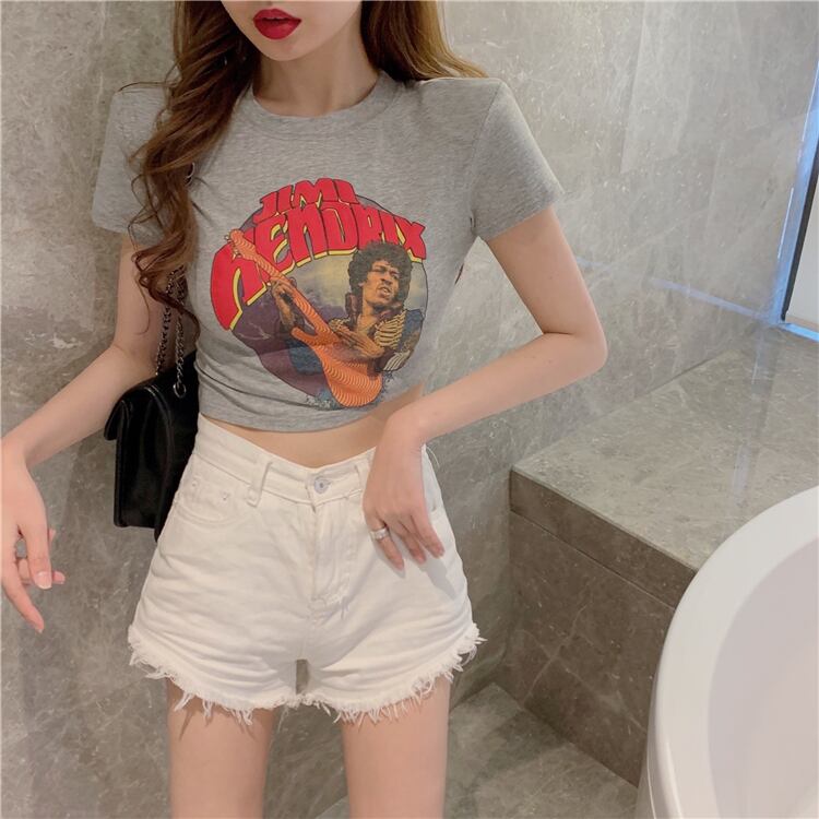 ラウンドネックスリムショートTシャツ レディース Oネック セブンプリンセス41921120487