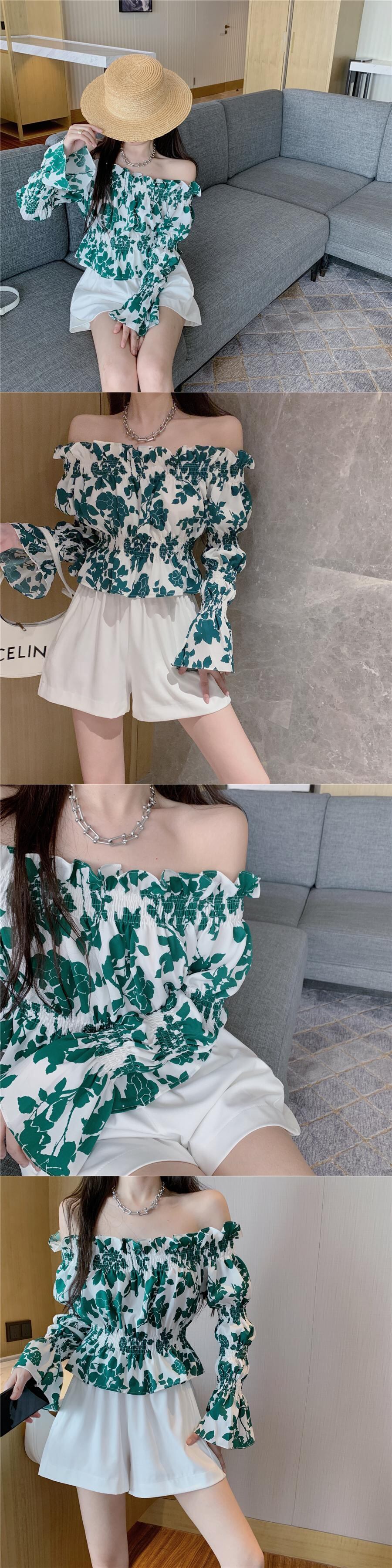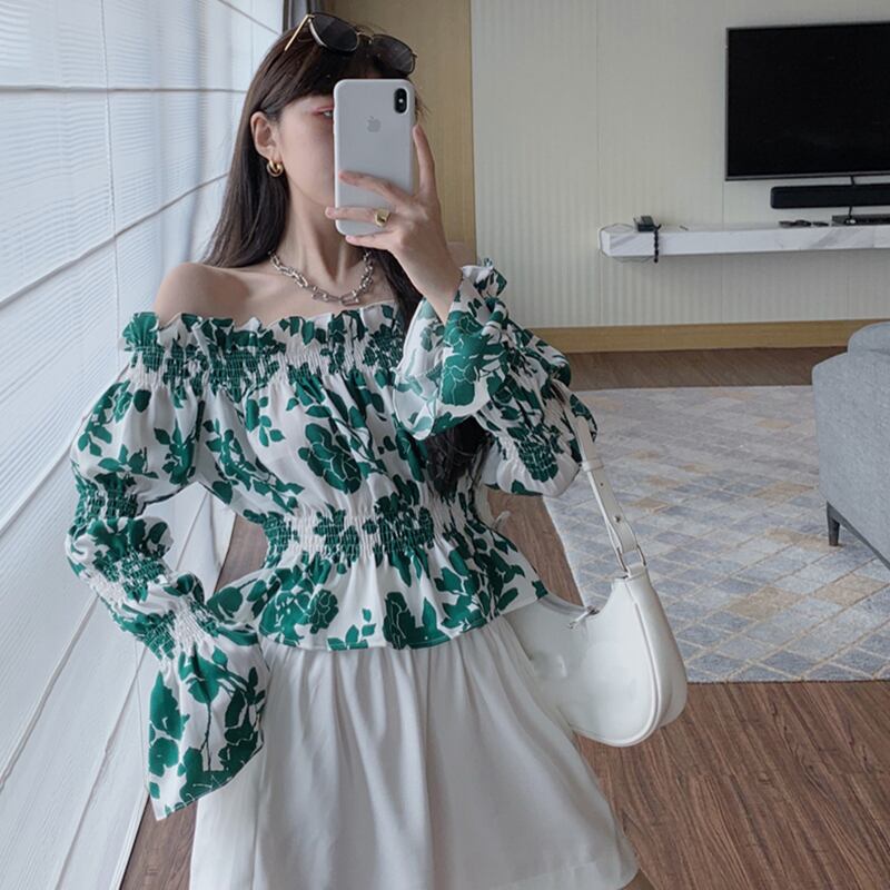 スタンダードフローラルシャツ ロング レッド レトロ 花柄 セブンプリンセス3695427889