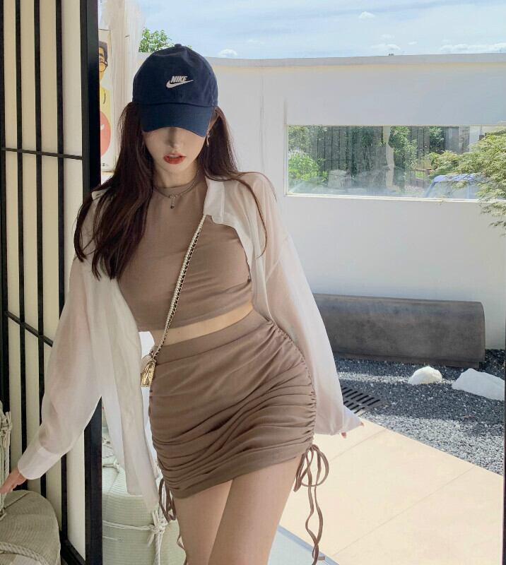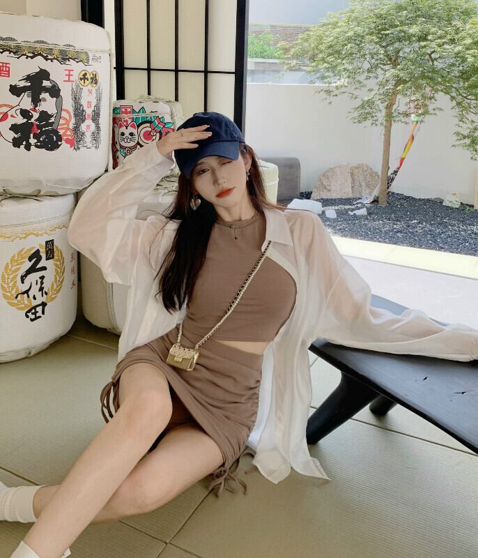 スリットバックレース薄手シャツ ノースリーブギャザースカート セブンプリンセス2953871493
