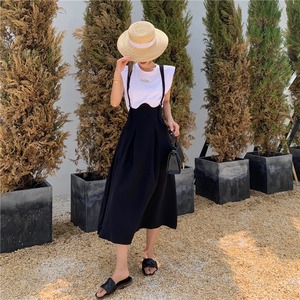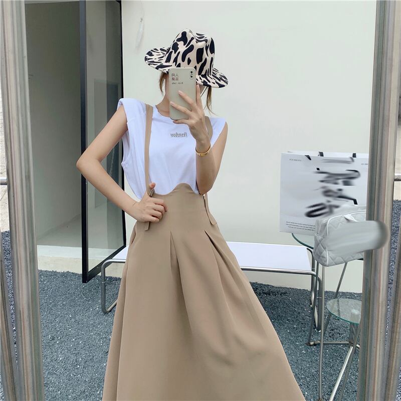 色:Tシャツ,ブラックストラップドレス,ライトカーキストラップドレス