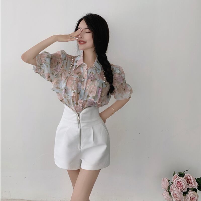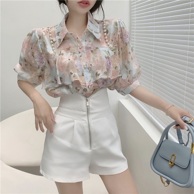シャツ トップス サマー薄手パールフローラルスタンダード レトロ 夏物 花柄 真珠 セブンプリンセス50561248608