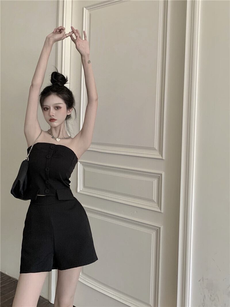サマースリムトップス ハイウェストウェストワイドレッグショーツ ストリート 夏物 ブルマー ワイドパンツ セブンプリンセス37894356741