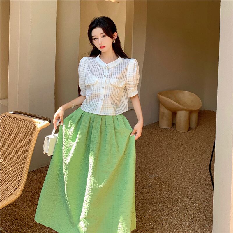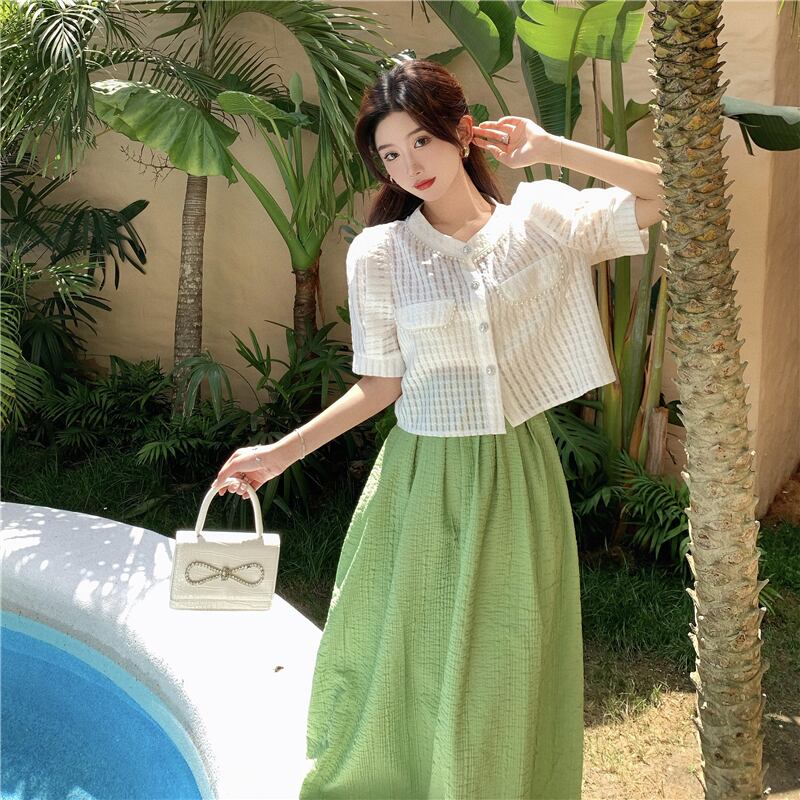 レディースサマーショートカーディガンシャツ ハイウェストウェストスカート 夏物 セブンプリンセス42669407474