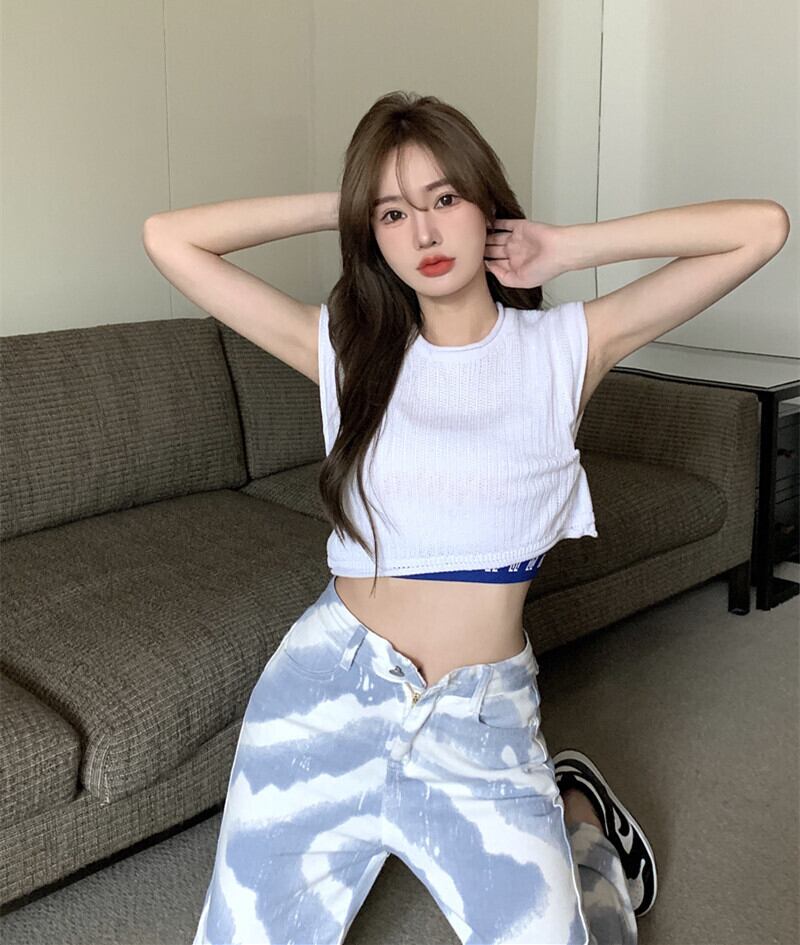 サマーショートルーズセーター ノースリーブTシャツ ホワイトトップス 夏物 シルク セブンプリンセス97990094001