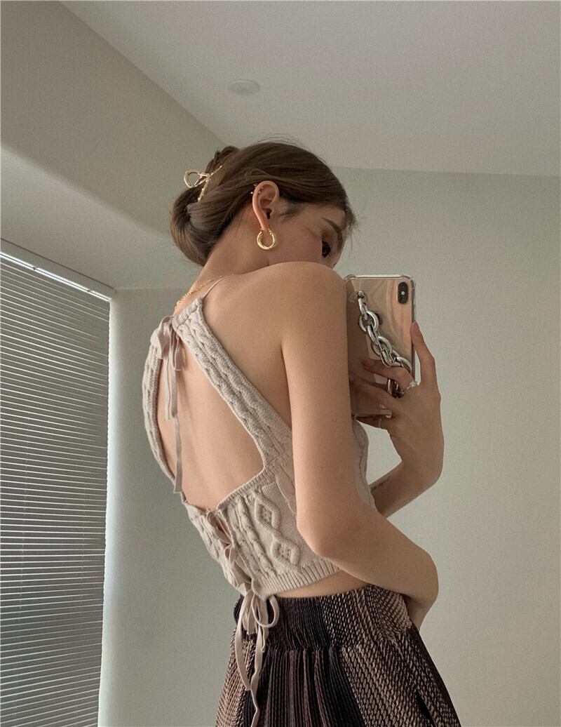 バックシャツ サマースタイルスタンダードショートニットトップス レトロ 夏物 セブンプリンセス43644546600