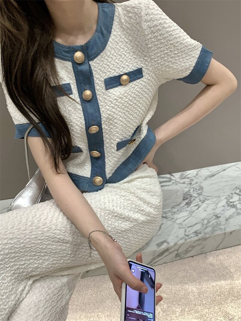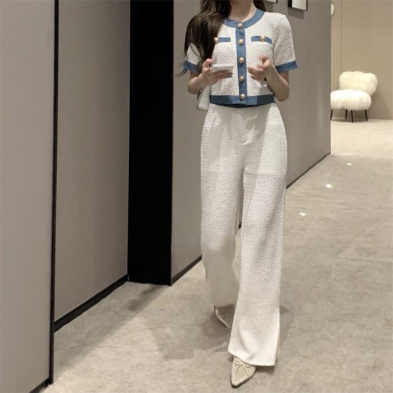ワイドレッグパンツ サマーショートトップス カジュアルレッド ストリート 夏物 ワイドパンツ セブンプリンセス36192499299