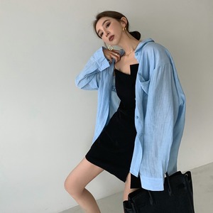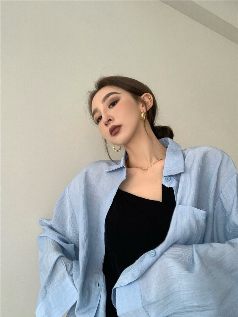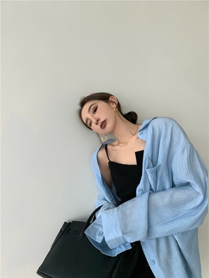 ブルーシャツ レディースサマー薄手ルーズカジュアルカラートップス ロング 夏物 セブンプリンセス39642474885