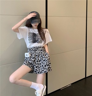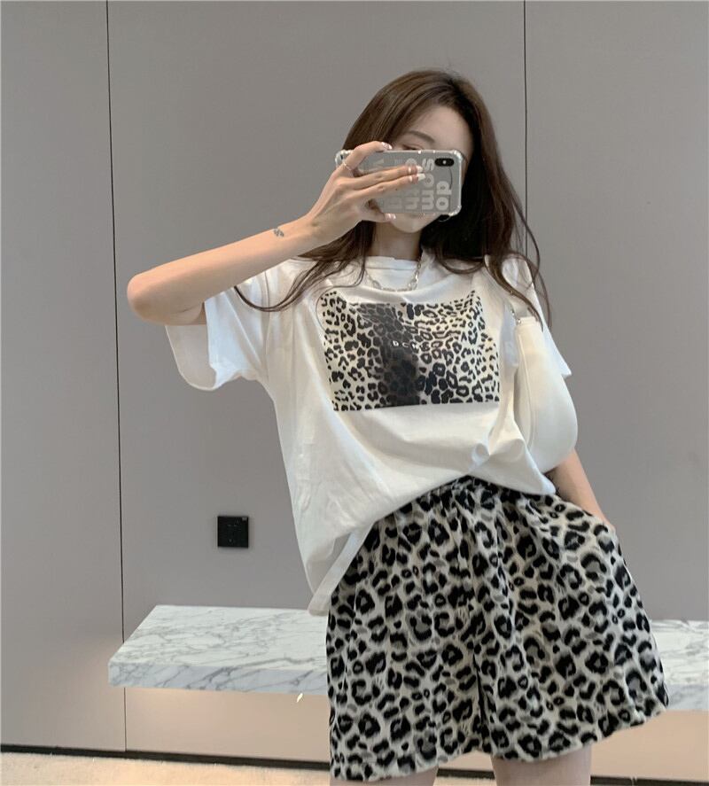 ホワイトTシャツ レオパードプリント柄サマースタイルルーズトップス 夏物 セブンプリンセス38068813157