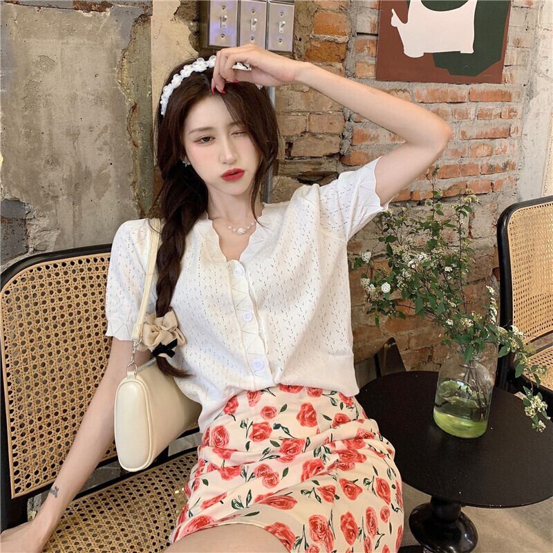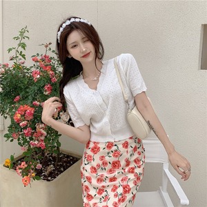 ニットショートカーディガンジャケット 薄手レディースサマーVネックスリムトップス 夏物 セブンプリンセス79828229921