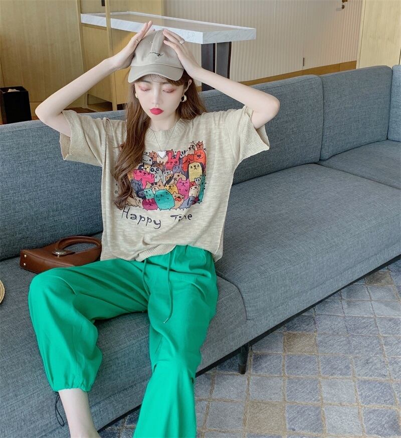 ニットセーター 薄手サマープリントルーズラウンドネックカジュアルTシャツ トップス 夏物 Oネック セブンプリンセス86615133724