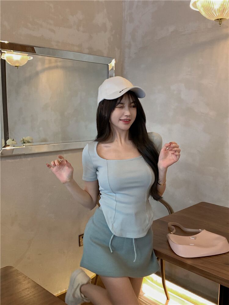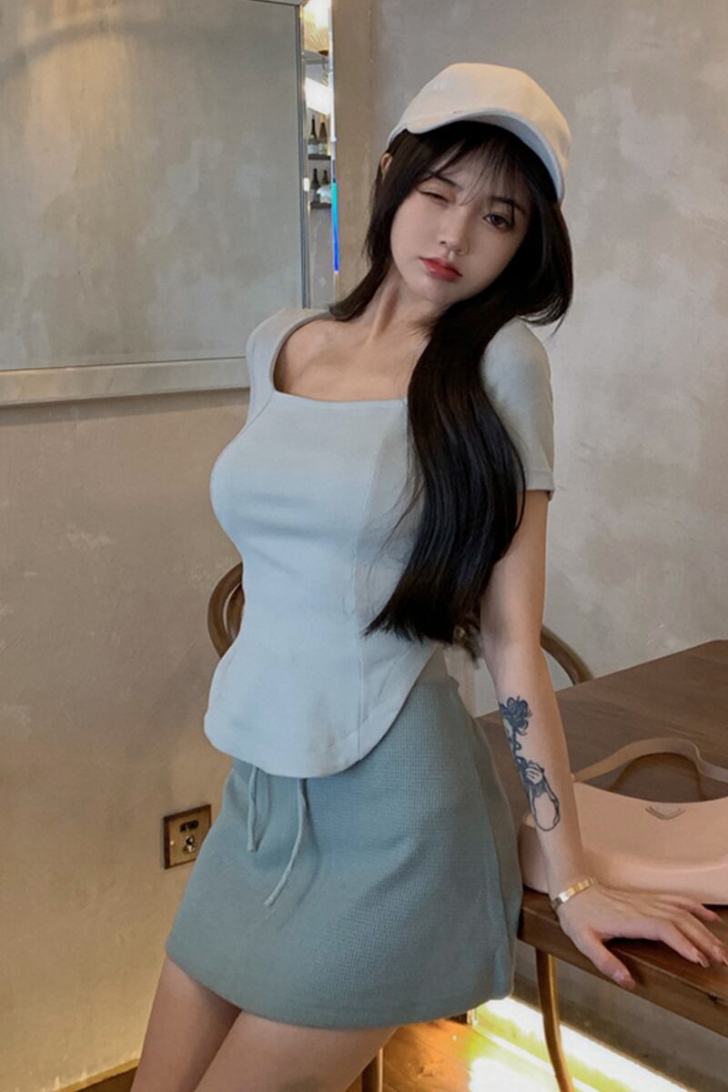 レディースサマースリムTシャツ ギャザースカート 夏物 スクウェア セブンプリンセス43490562615