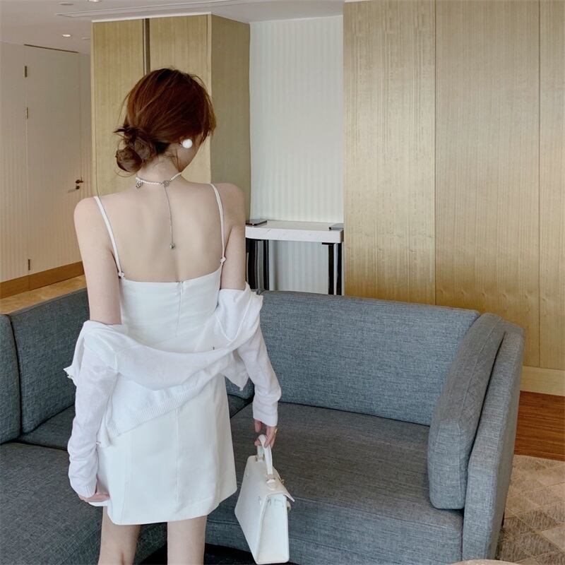 色:白い日焼け止め,黒い日焼け防止服,白いドレス,ブラックサスペンダースカート