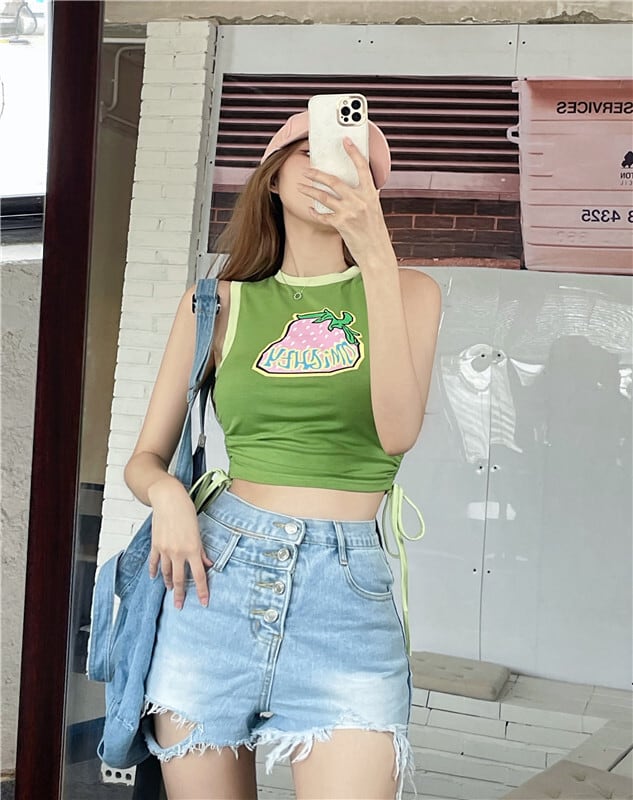 ノースリーブショートプリントサマースリムトップス 夏物 セブンプリンセス70303770259