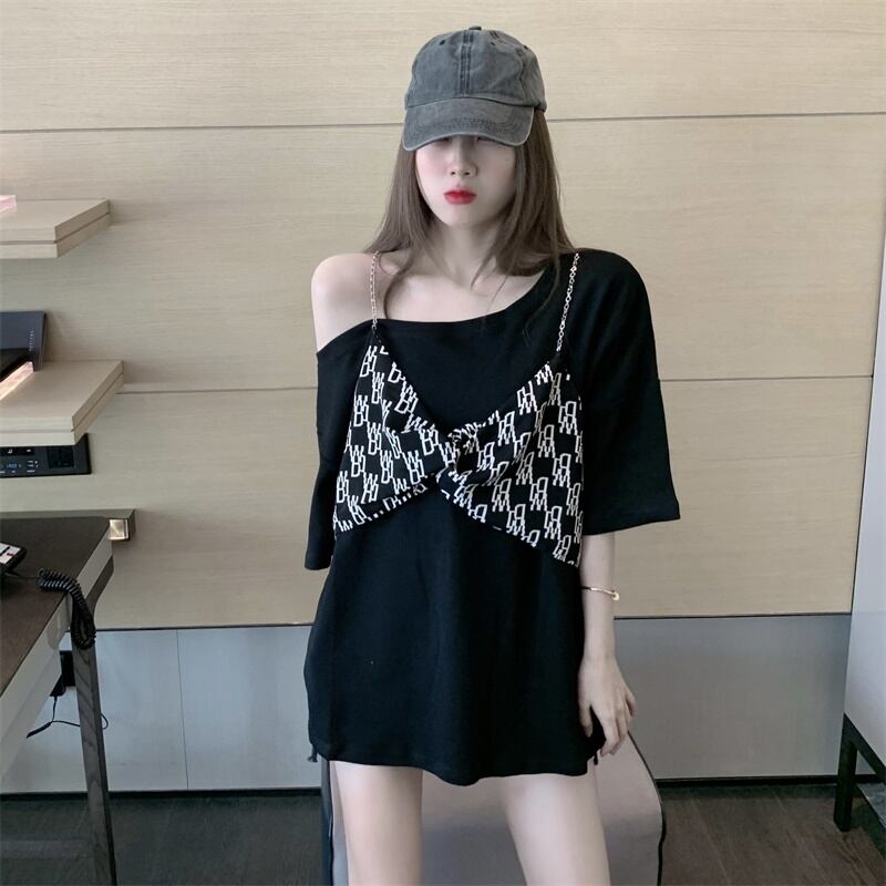 サマーTシャツ ルーズ 夏物 ステッチ セブンプリンセス79776865826
