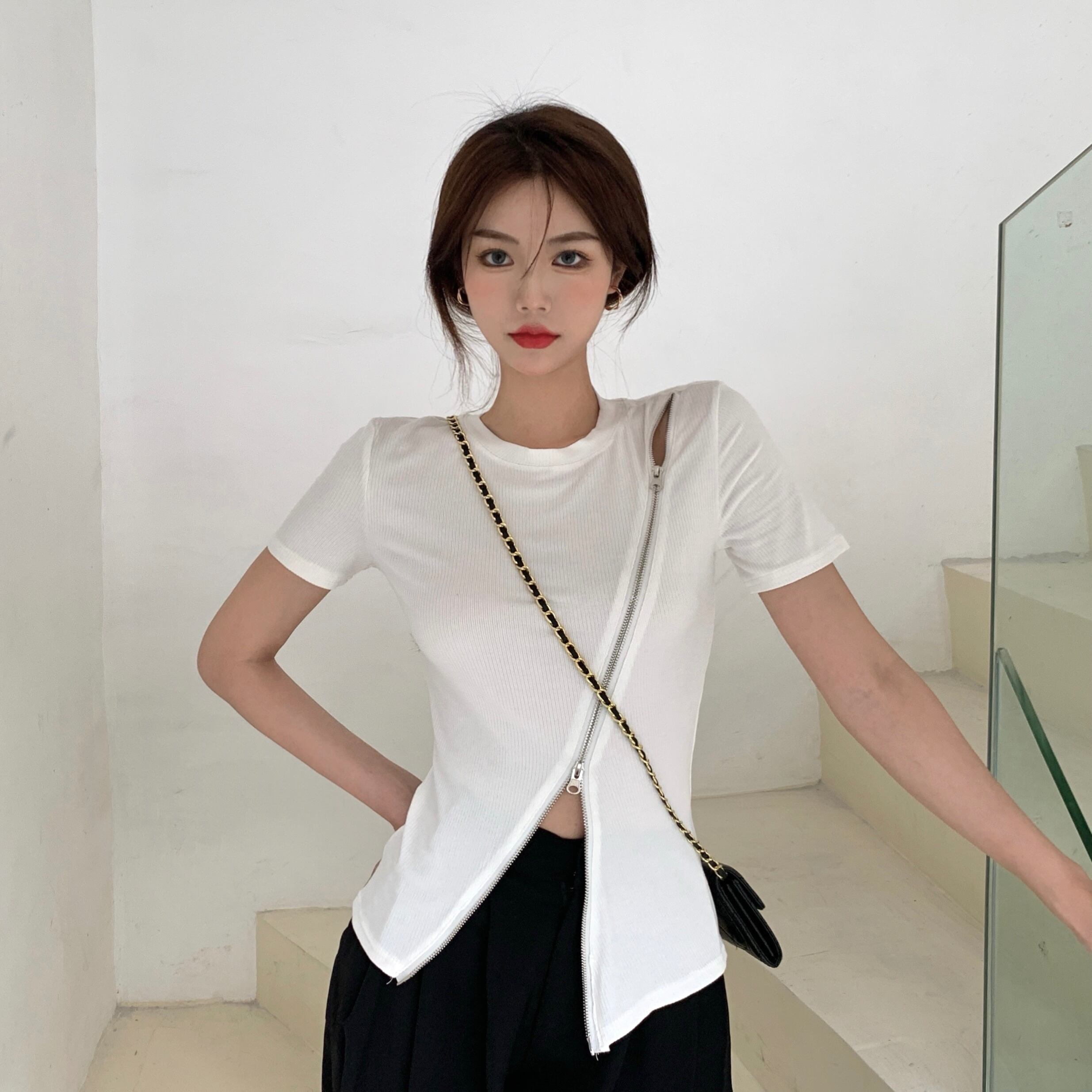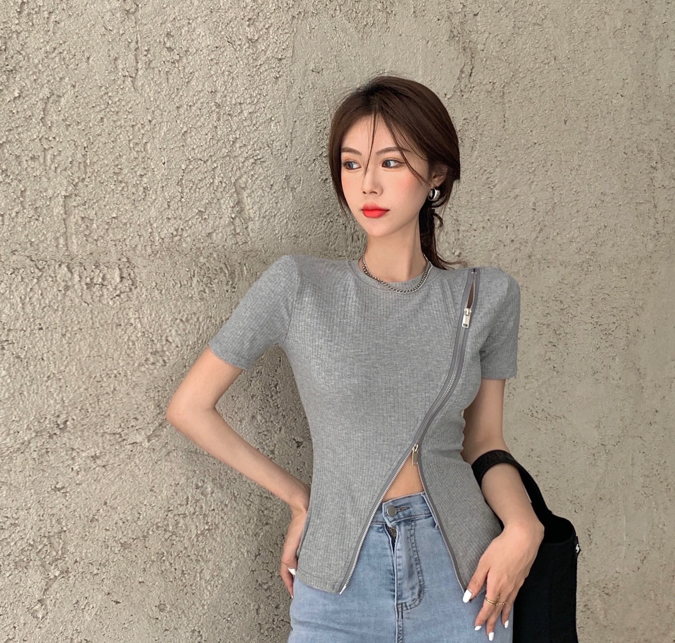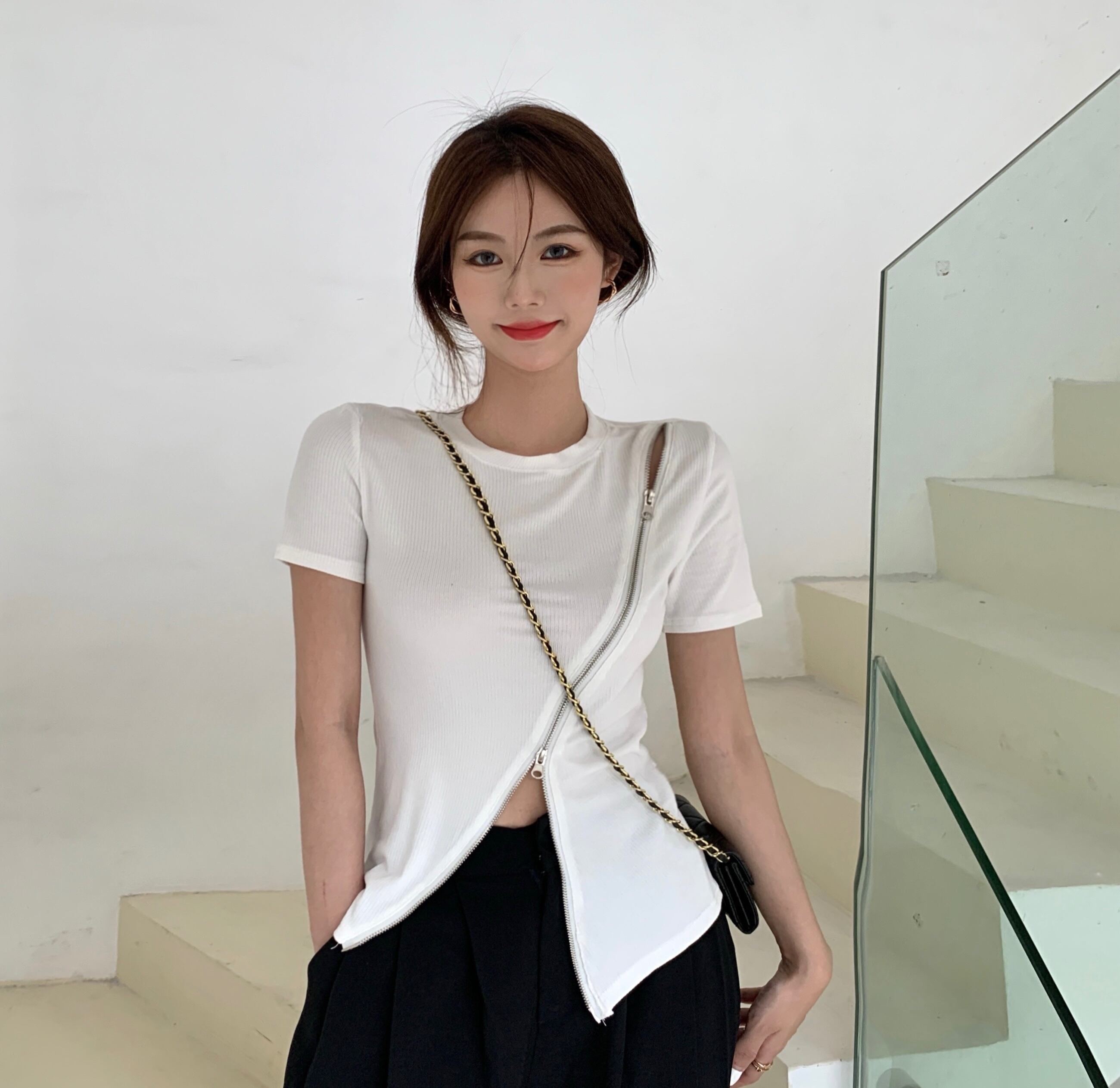 スタイルスリムジッパーラウンドネックTシャツ Oネック セブンプリンセス461184994
