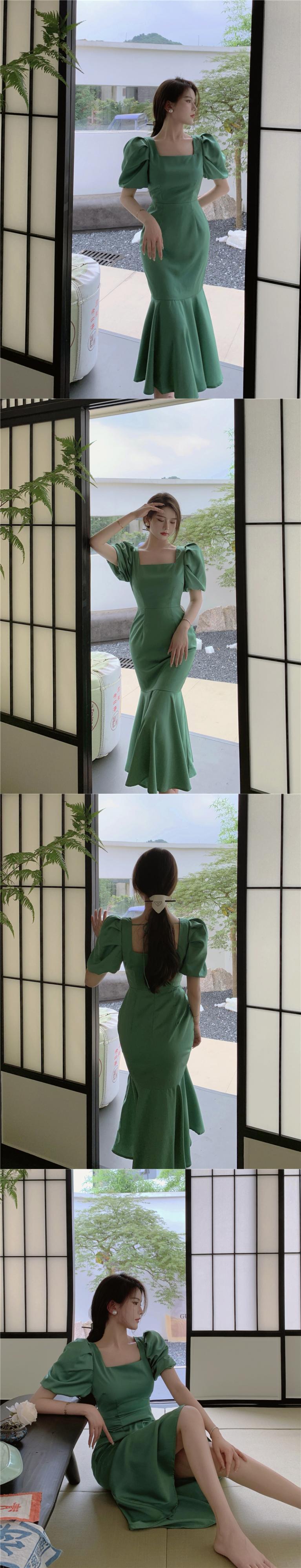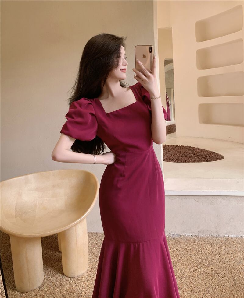 スタイルスタンダードドレス サマーウェストスリーブスカート 薄手ロング レトロ 夏物 スクウェア セブンプリンセス60337552707