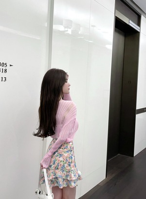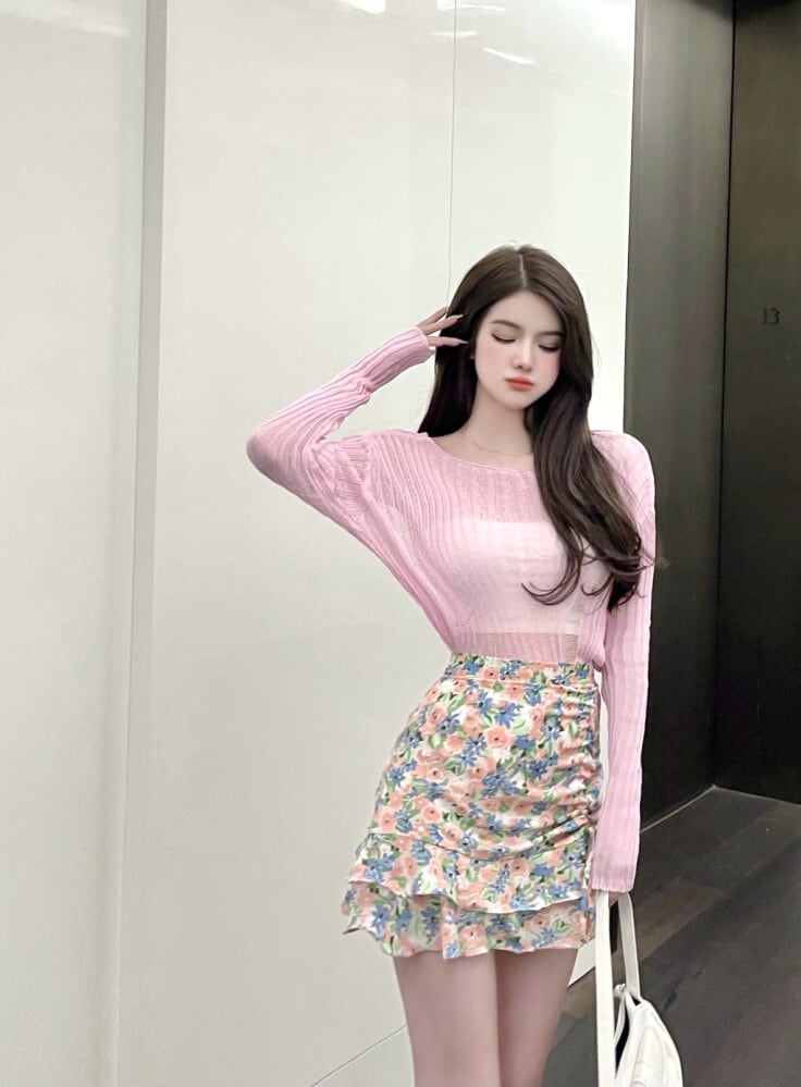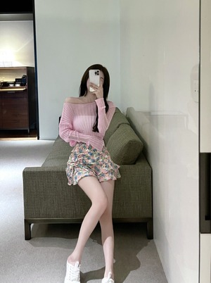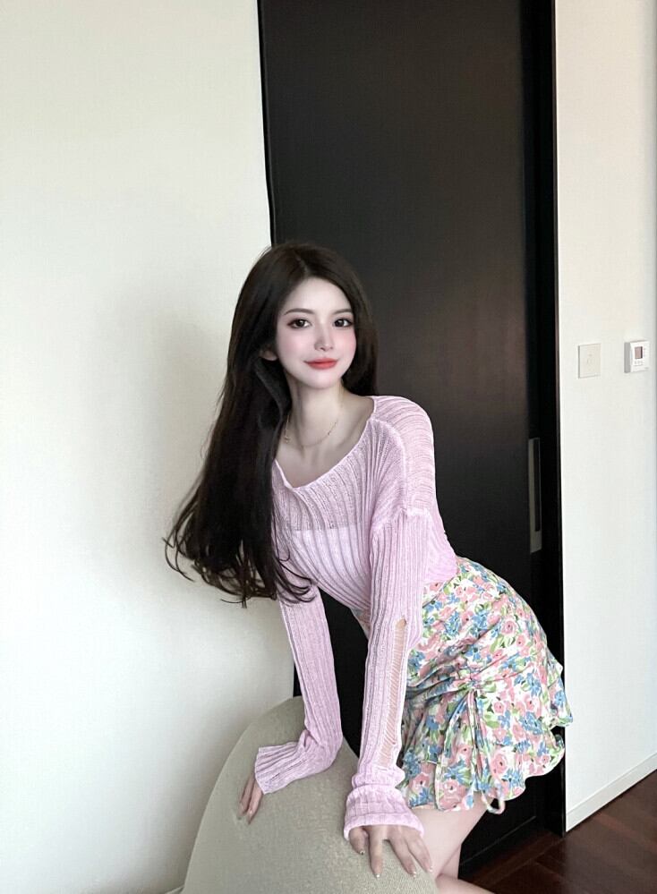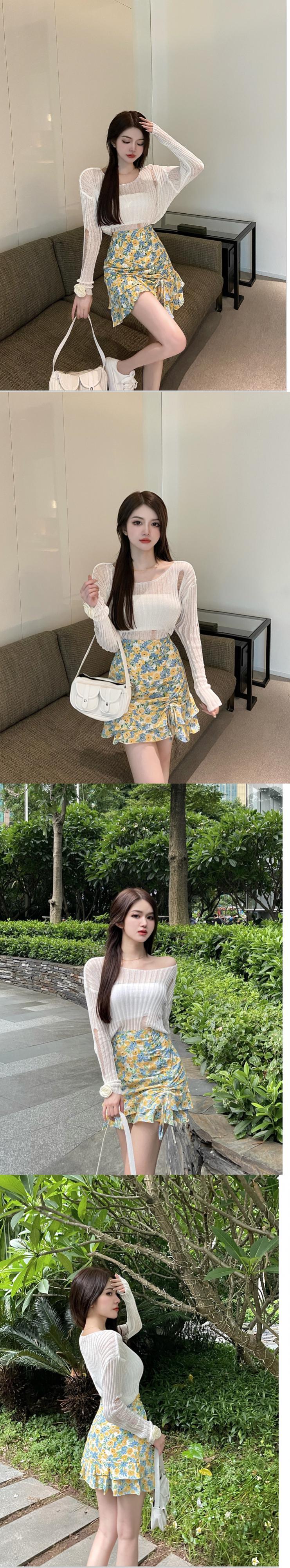 スタイル薄手ニットトップス ハイウェストプリーツフローラルスカート ロング 花柄 セブンプリンセス27347978229