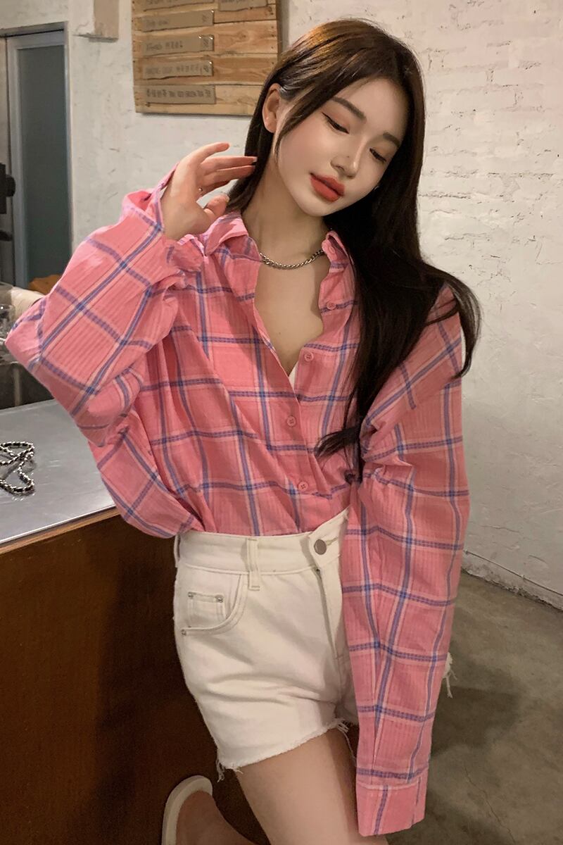 スタイルルーズカジュアル格子柄シャツ セブンプリンセス86677187129